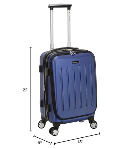 Description This carry on is made of ABS. This material is extremely lightweight, durable, and protects the contents of your luggage. Front zippered compartment allows for quick-access to items. Fully padded laptop pocket, fits up to 15" laptop. Silent dual casters, 4 spinner wheels rotate 360 degrees for easy maneuverability. This luggage allows you to pack more while avoiding the excess weight surcharges imposed by most airlines. Expandable. One touch Aluminum handle. 5 year . 22"X13"x9" (with wheels) weighs 7 lbs.