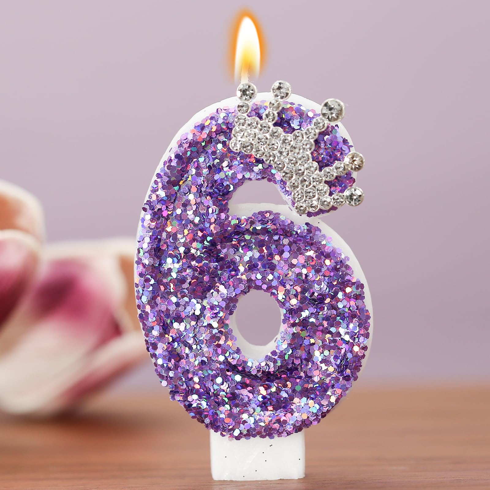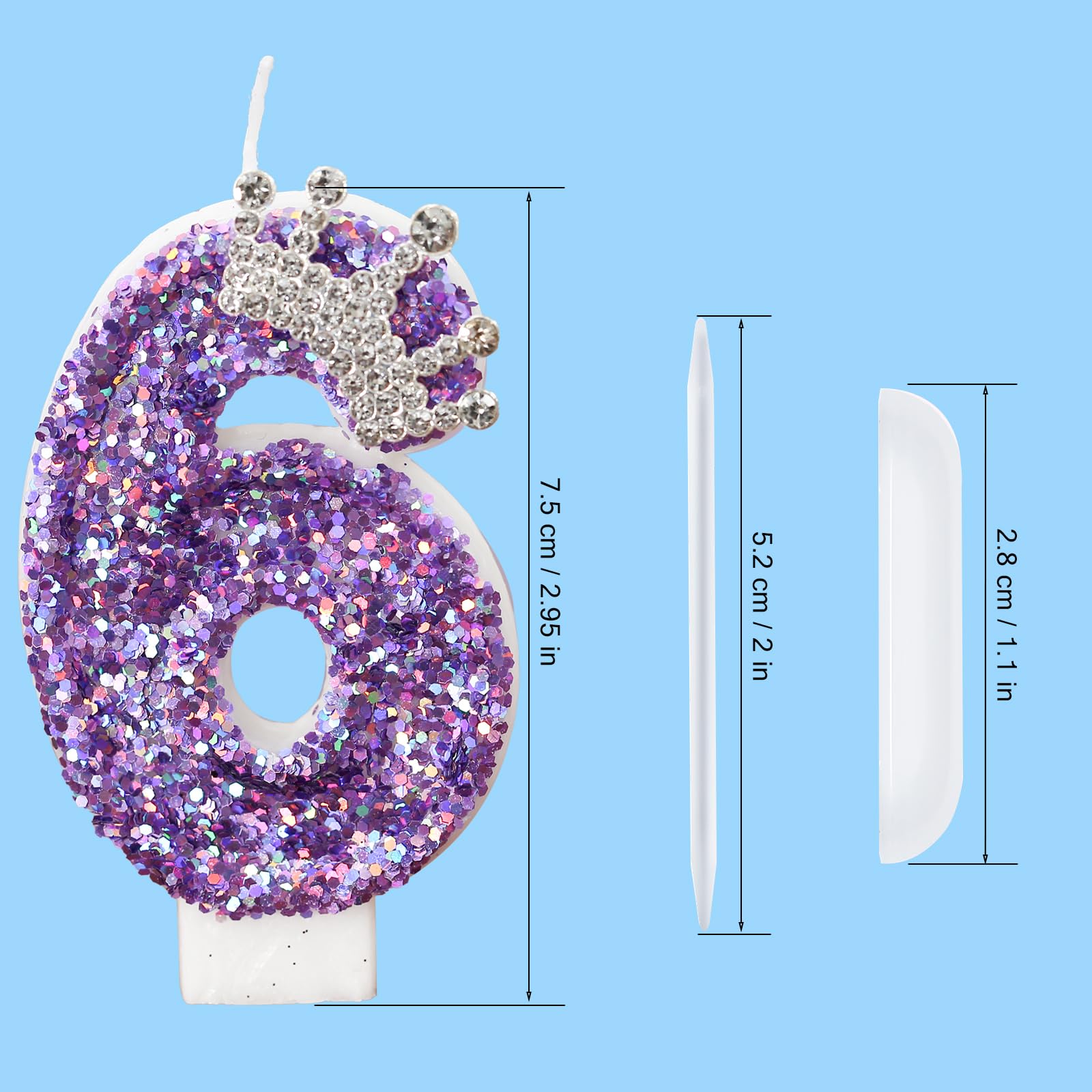 【Exquisite Appearance】This purple digital candle with crown decoration is beautifully crafted, the candle is inlaid with delicate sequins and crown jewelry, adding a touch of nobility and luxury to your party.