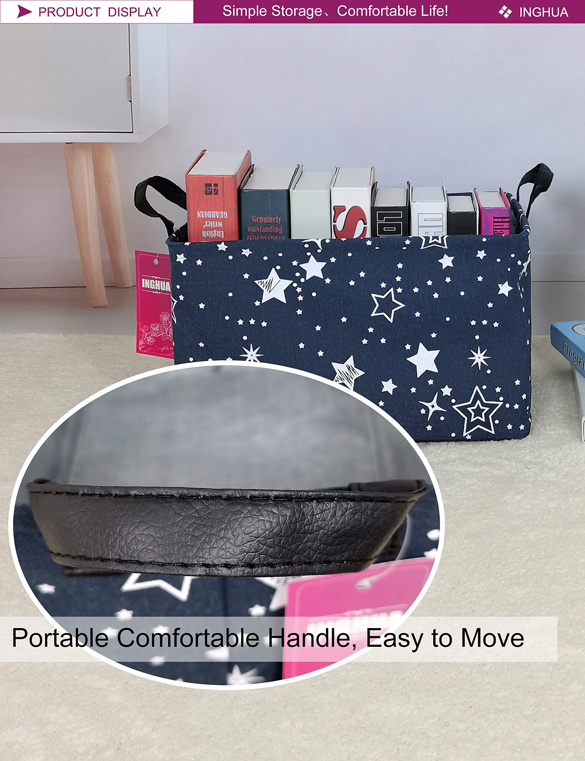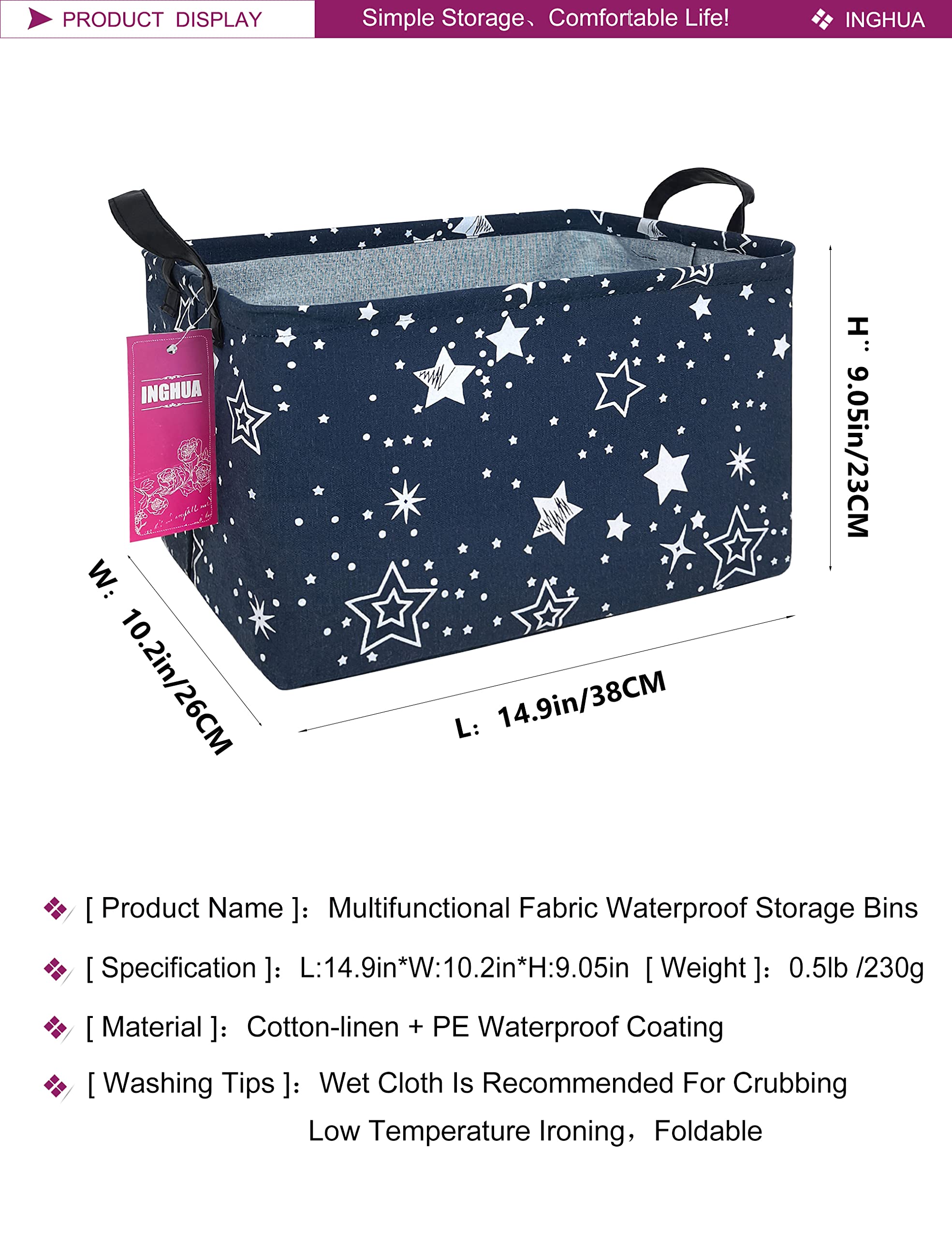 Features: -We selected high-quality Polyester canvas + linen fabric -It's safe, non-toxic, wear-resistant, practical. -With handles to conveniently lift it. -The laundry hamper adopted collapsible design,it can stand up on its own well. -This storage basket suitable for adult, for kids, for girls, for boys, for teens, for childern,for pets.