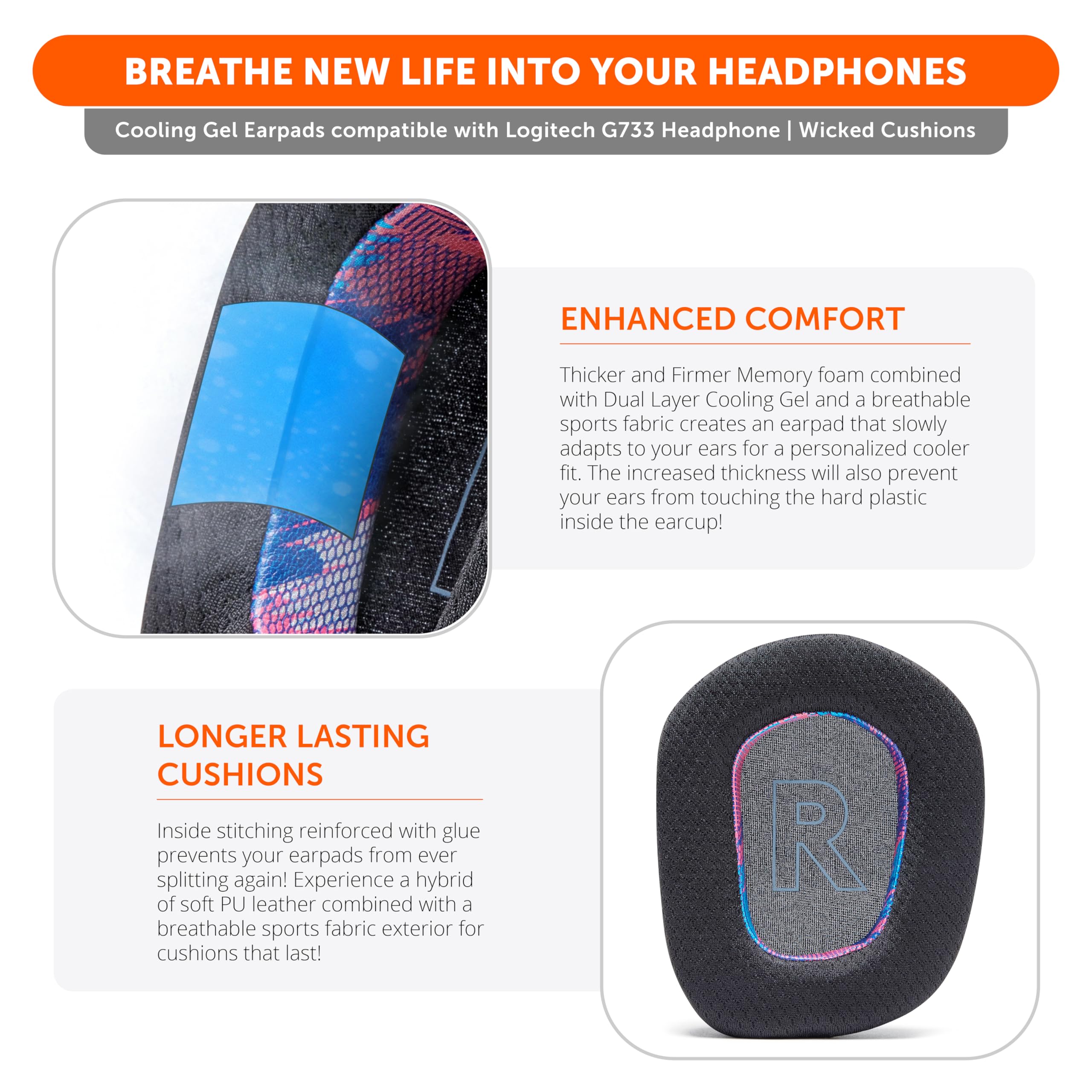 The FreeZe Experience: Upgrade your Logitech G733 gaming headphones with WC FreeZe Cooling Gel Earpads. Our unique Dual Layer cooling gel technology provides sustained comfort and coolness, perfect for extended gaming marathons.