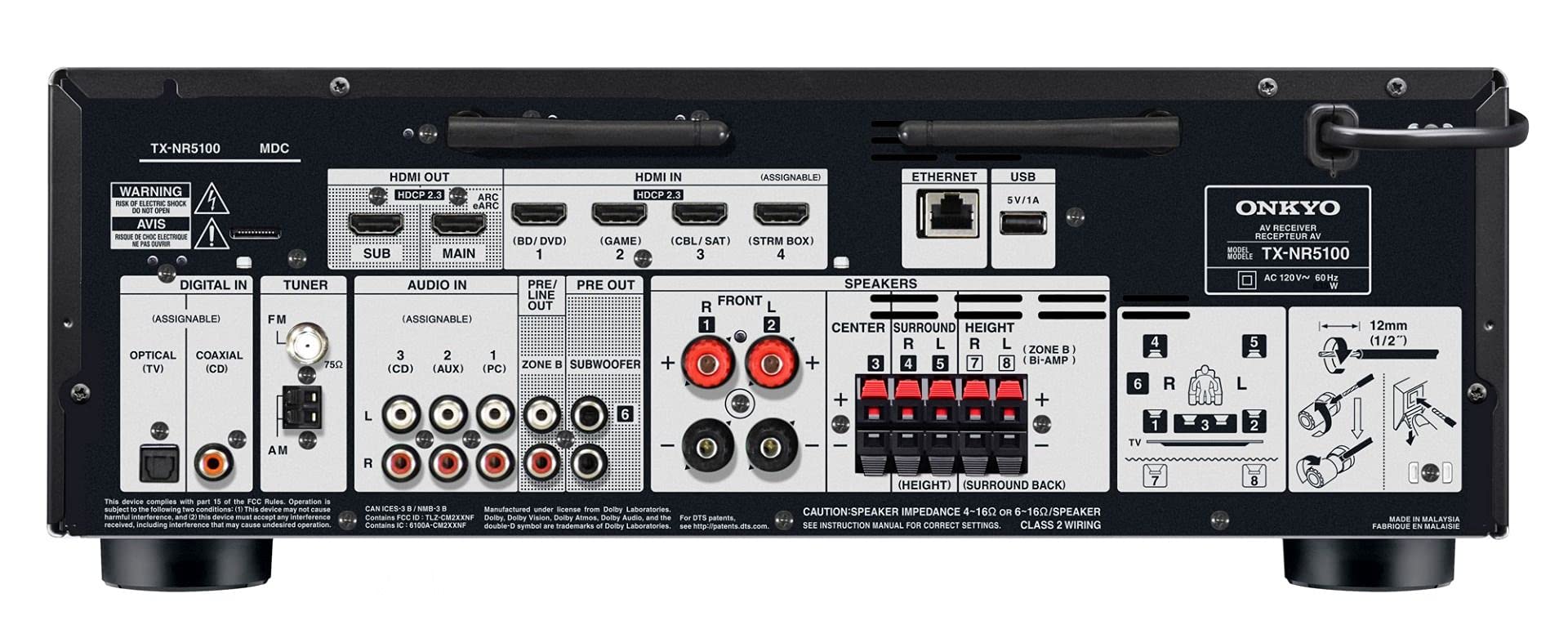 The Onkyo TX-NR5100 7.2-Channel 8K AV Receiver is an affordable and versatile home theater centerpiece tailored to deliver a best-in-class entertainment experience for your movies, music, and next-gen gaming systems. Our SMART AV Receiver™ combines the latest in HDMI 2.1 and 8K tech, high-res audio, and immersive sound via your connected media players, gaming consoles, and advanced audio from your TV apps via eARC for an unparalleled home theater experience. Cue and control music with Hey Google, Alexa, or Siri; or hear what’s playing through the AVR on wireless headphones with top-notch Bluetooth® with aptX HD transmission technology. The options are virtually limitless.