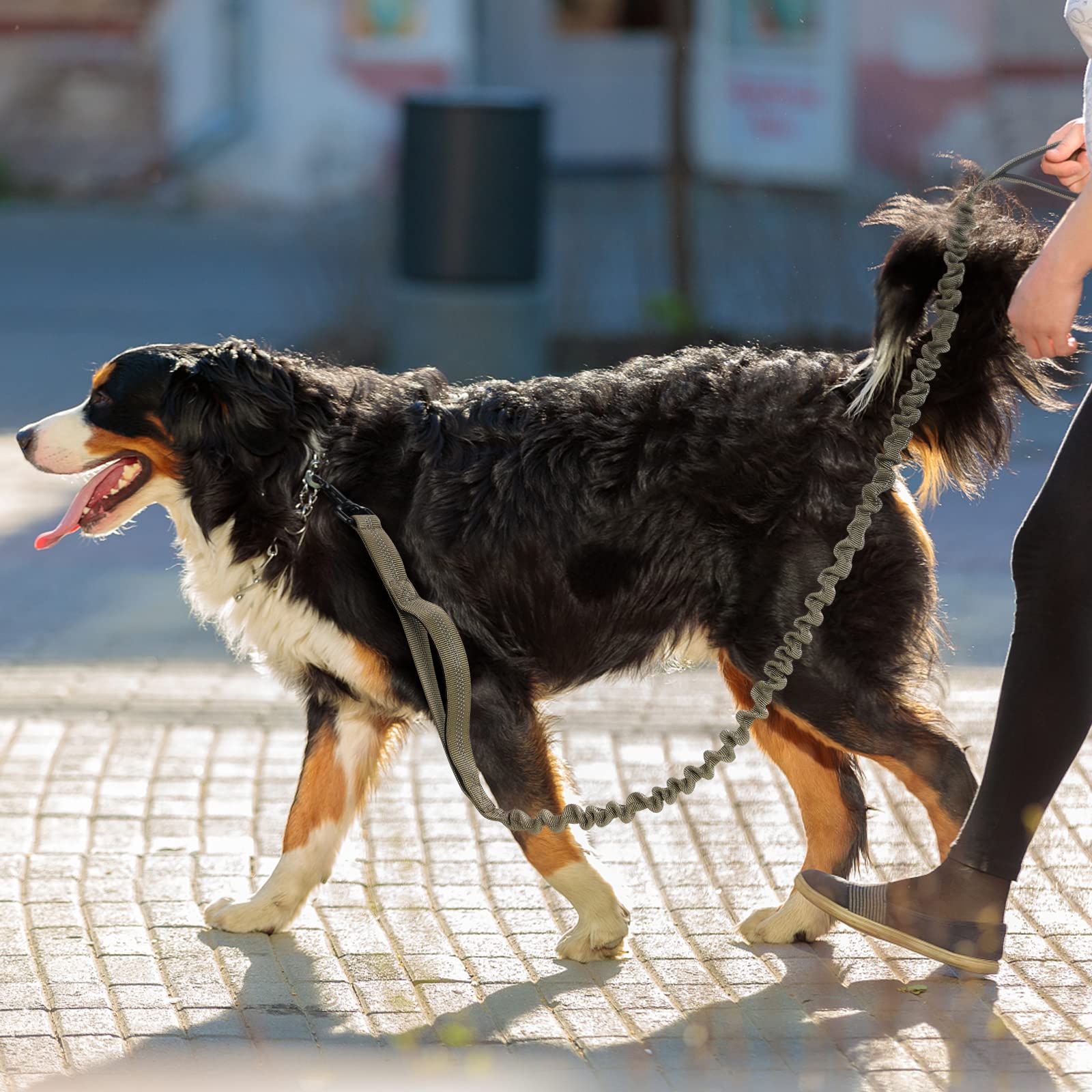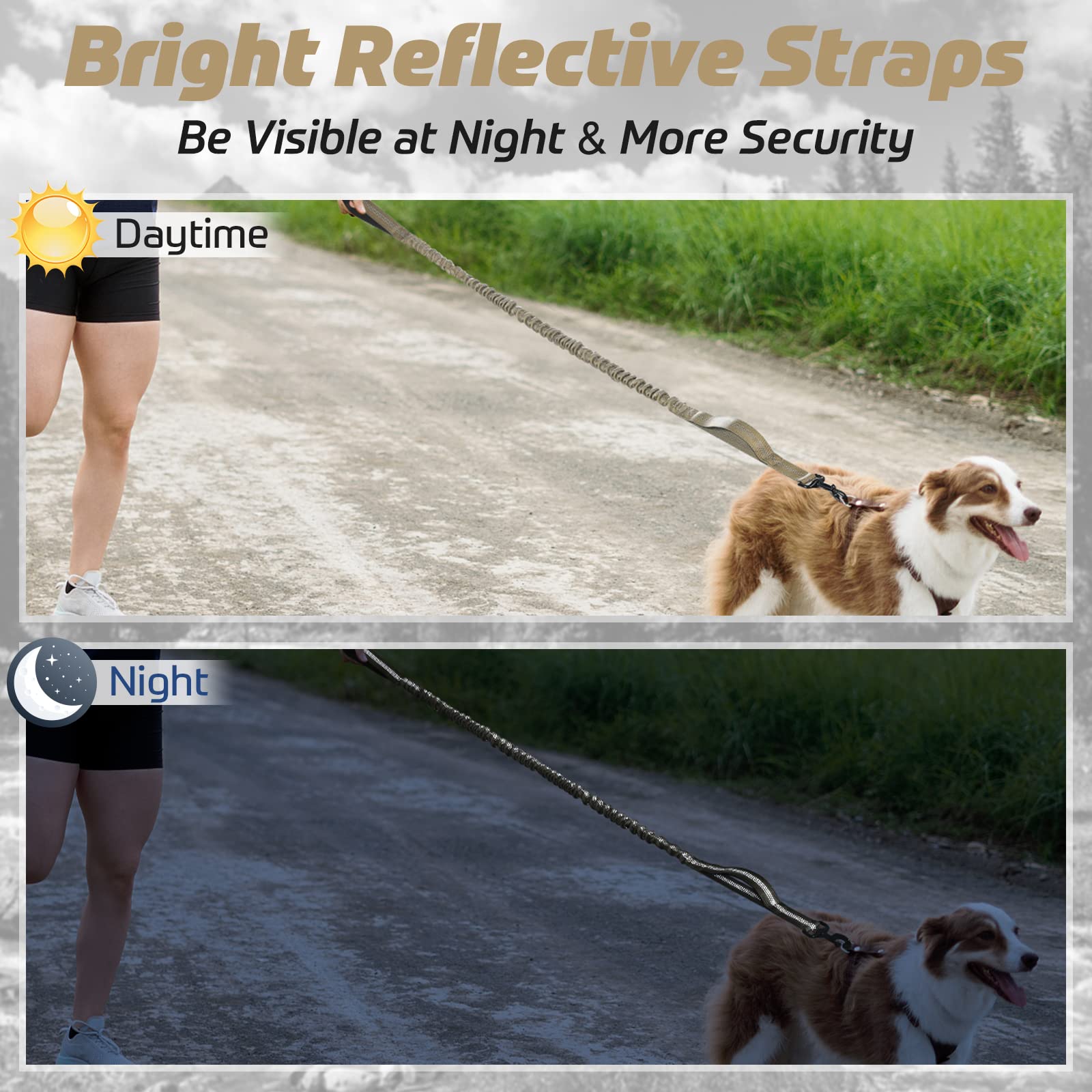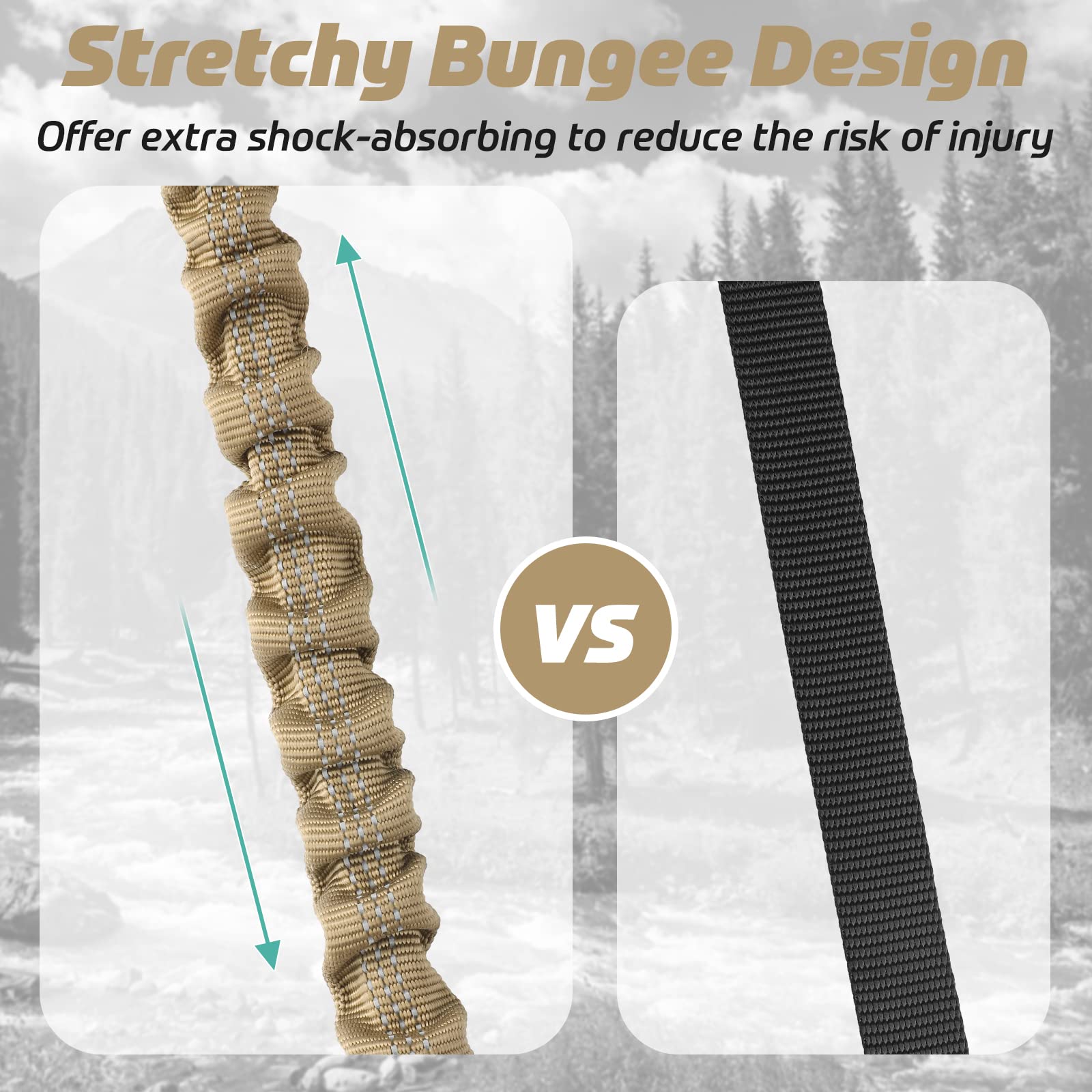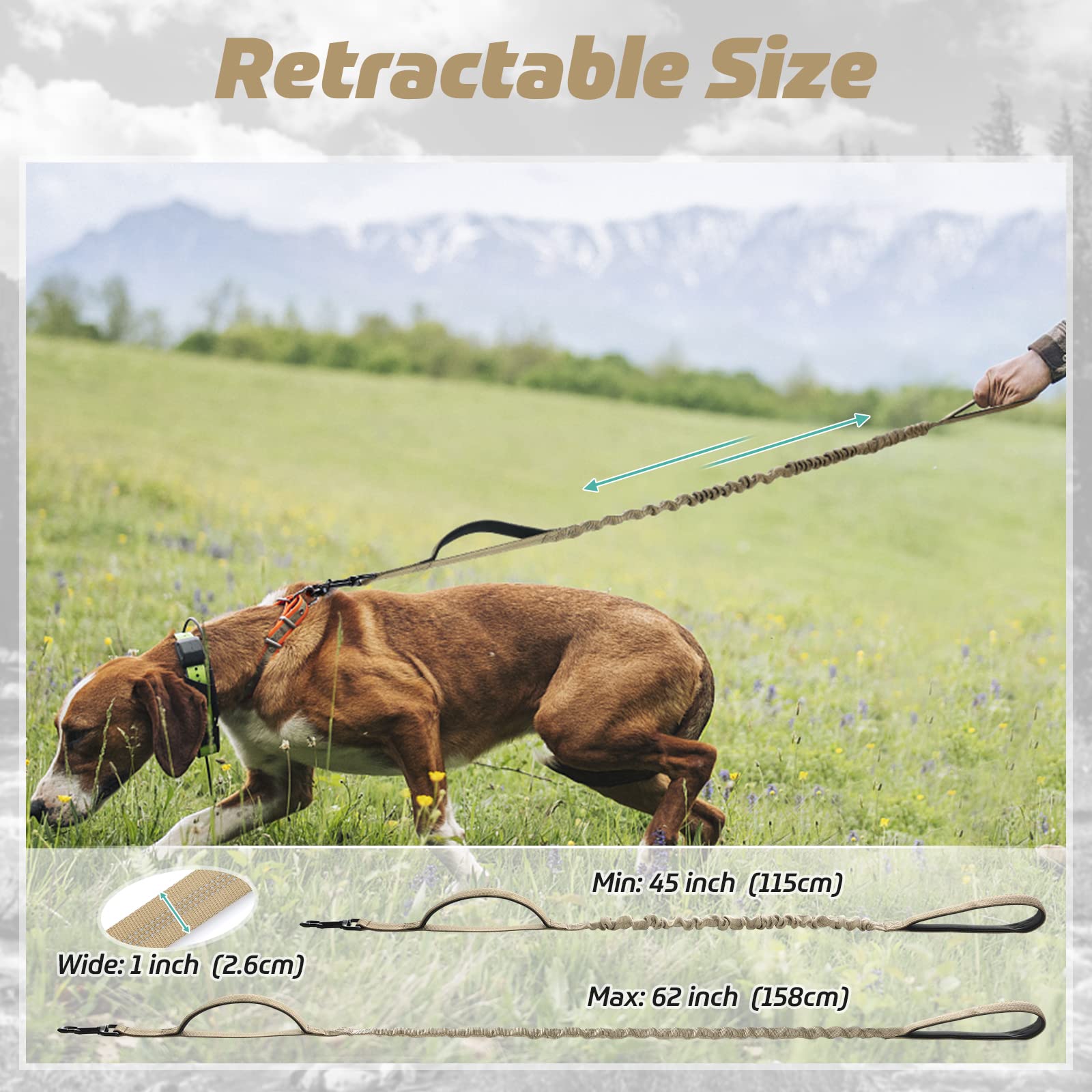 Anti-Shock Bungee Dog Leash: The shock-absorbing bungee leash has a built-in elastic rubber band, which can extend to 62 inches from 45 inches to give sufficient elasticity. This design eases the pressure and prevents choking when a sudden pull, reducing the risk of injury and enhancing the comfort of hands, improving walking safety.