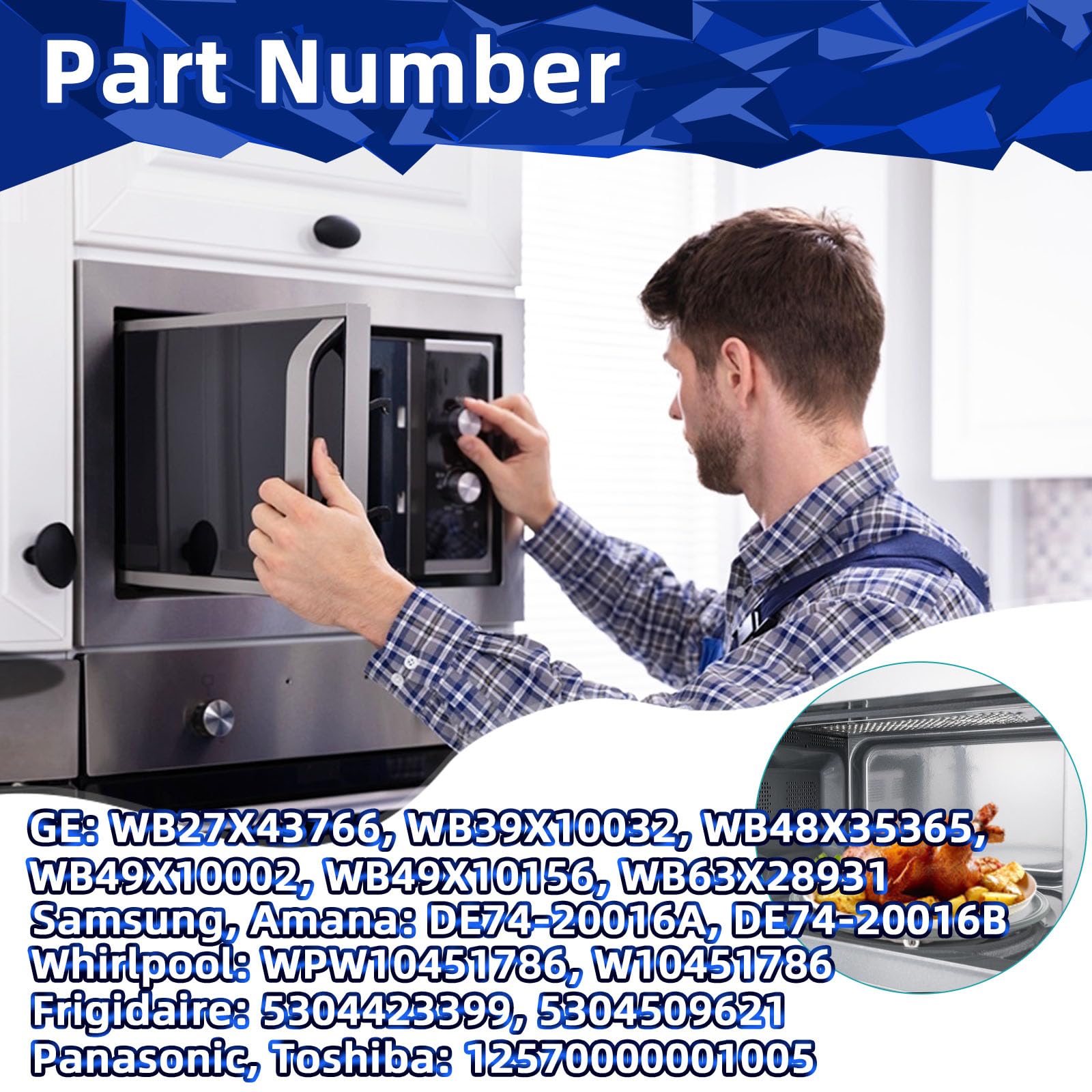 [REPLACEMENT FOR MICROWAVE TURNTABLE] - This microwave turntable meets OEM Standards. The microwave glass plate compatible with Samsung DE74-20016A, DE74-20016B; Sharp Toshiba Panasonic 12570000001005, 9KL12570000001005; Whirlpool WPW10451786; Kenmore Frigidaire 5304509621, 5304423399; GE WB49X10002, WB39X10032, WB27X43766 and more