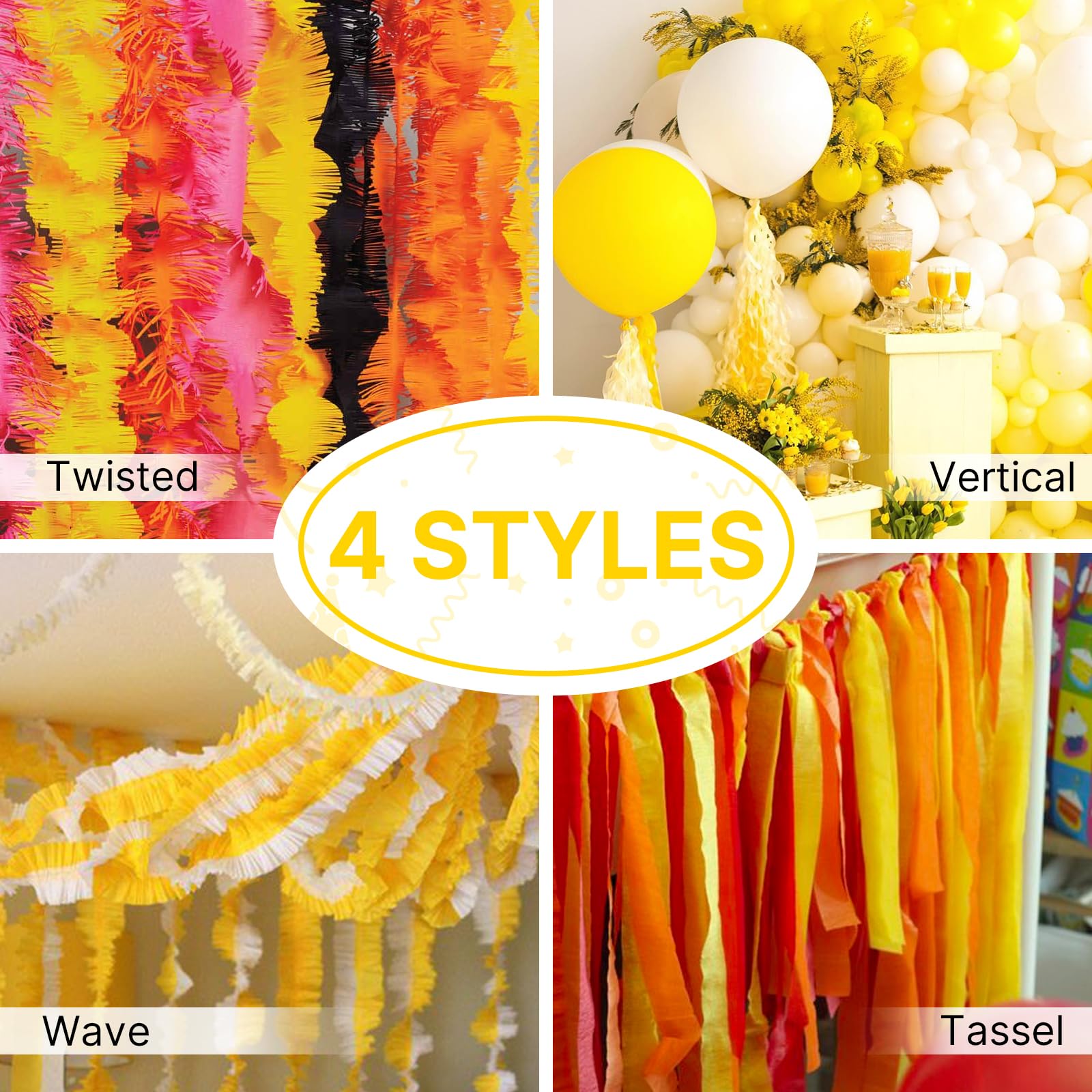 Easy to Decorate:These yellow crepe paper streamers are easy to untie.You can twist paper streamers together into spirals, Use the crepe paper roll for backdrop, match different colors to give your baby shower or bachelorette a customized look