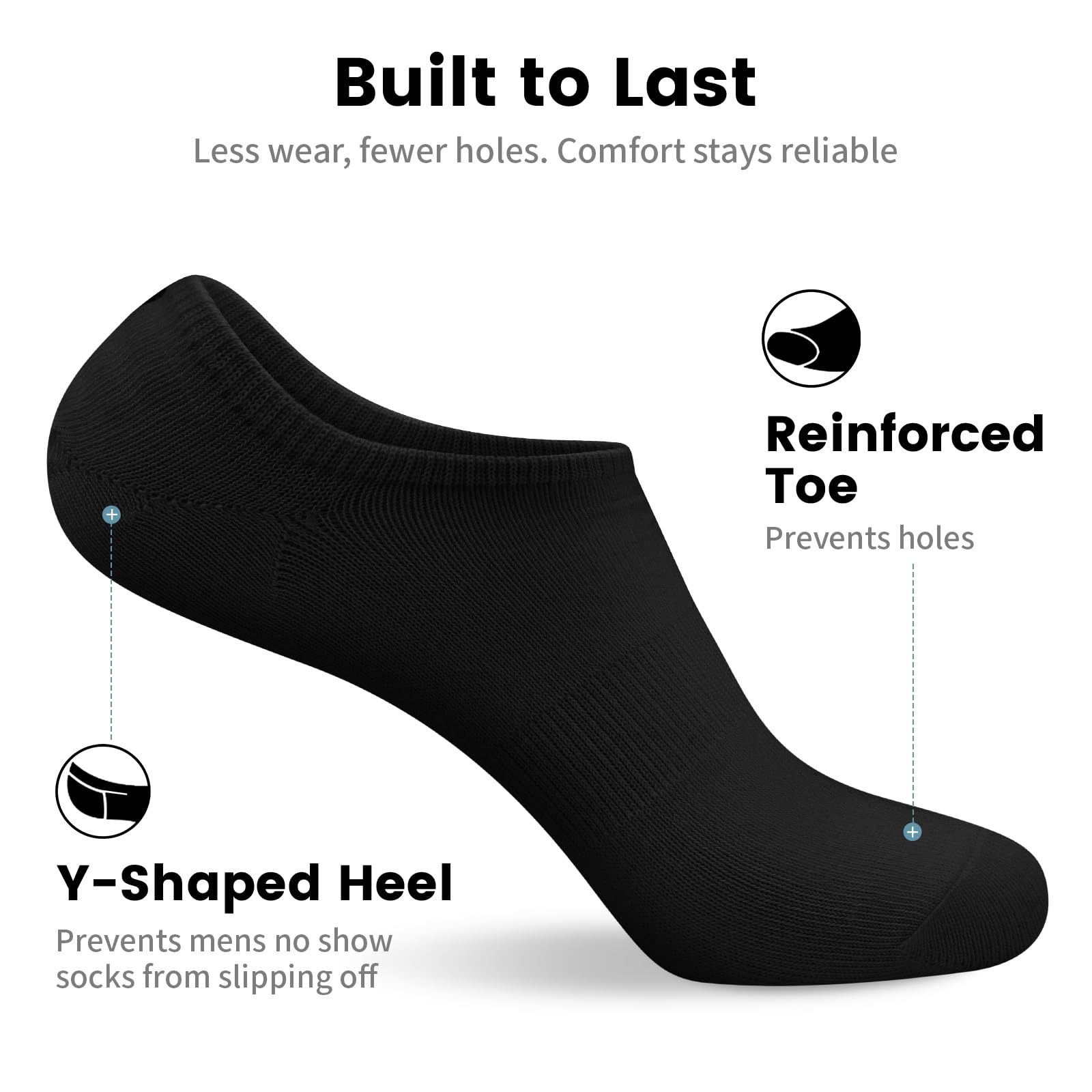 Made of high quality cotton/spandex which enhances durability, comfortability and sweat-wicking,these no show socks are ideal for indoor and outdoor activity.