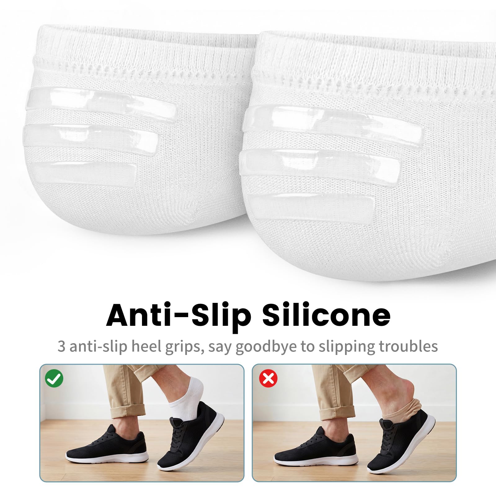 Cotton No Show Socks with 3 silicone heel grip technology ensures non-slip and your no show socks stay put all day long. M=size 6-10. L=size 11-13.