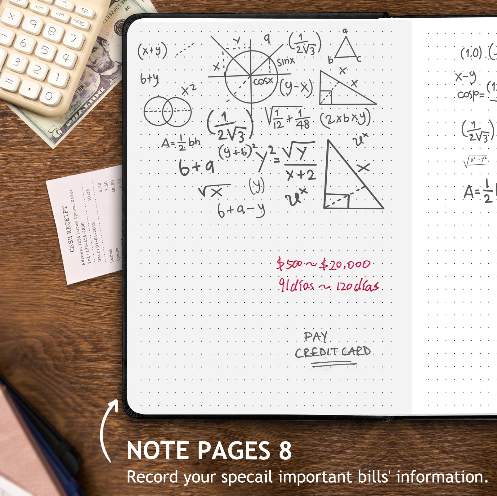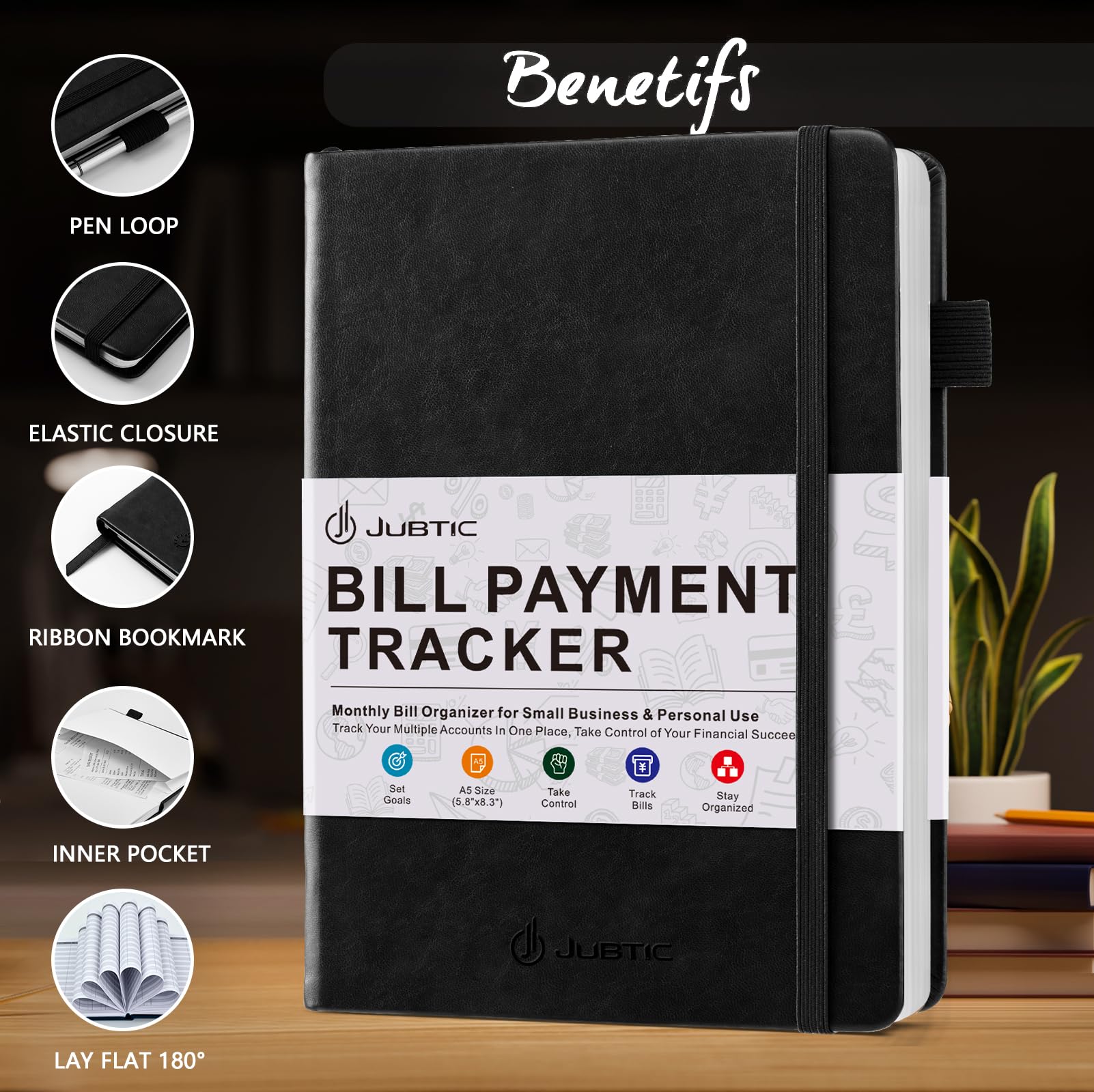 ✓ Practical and Classic Design: This bill payment tracker monthly organizer features a durable vegan leather hardcover and is made of thick no-bleed 100gsm FSC paper for easy writing and reducing ink leakage,bank account ledger book measures 5.8" by 8.3" and convenient to track your business at any time,accounting notebook comes with an elastic band,pen holder,1 bookmark,1 inner pocket at the end storing your checks and receipts in bank, credit card or debit card.