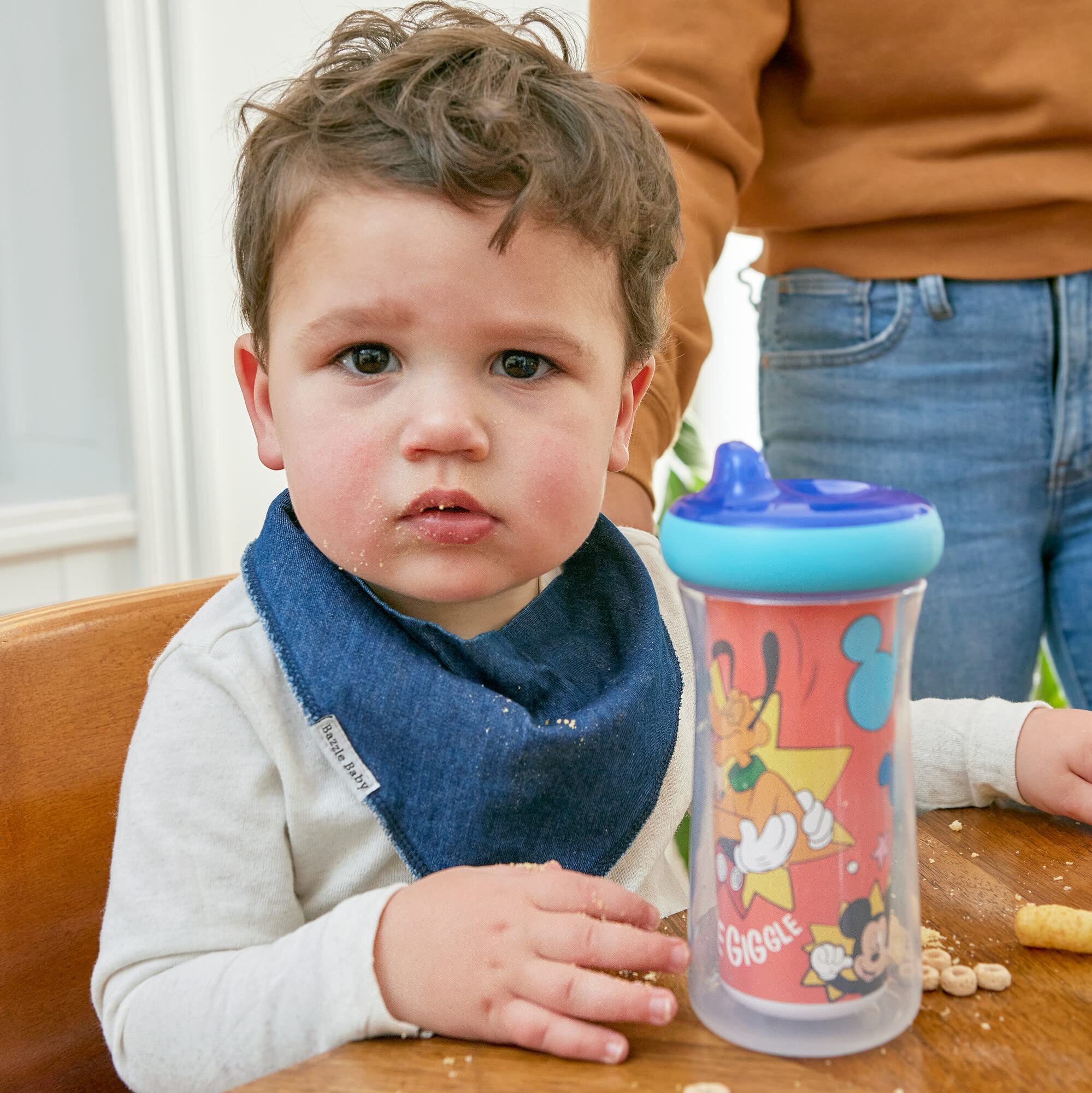 Keep drinks cool and encourage hydration with Mickey Mouse! This insulated sippy cup keeps drinks cool for longer and is great for families on the go. The silicone valve helps prevent leaks so that drinks stay inside the cup and off of your little traveler. This line of sippy cups was developed with a Pediatric Feeding Specialist and each features a bite-resistant hard spout that is better for your child’s developing teeth. The shorter spout size also makes the transition to an open cup smoother for your child. Kids will drop things, but each sippy cup lid has a DropGuard bumper that helps prevent breakage. And when the cup is empty, the dishwasher safe design makes keeping it clean simple.