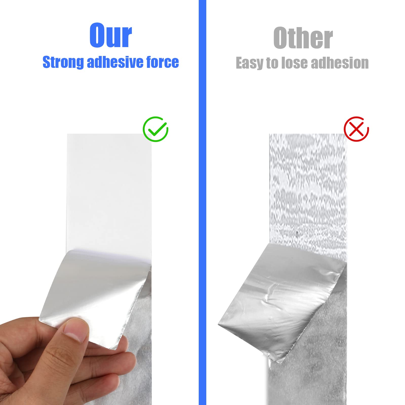 MORE STICKY: Our aluminum foil tape is made of premium pressure-sensitive adhesive. Persistent adhesion is provided at low and high temperatures. (Long-term temperature resistance: 120℃, Short-term temperature resistance: 130℃) UV resistant, moisture resistant, heat resistant and show good performance in any type of weather.