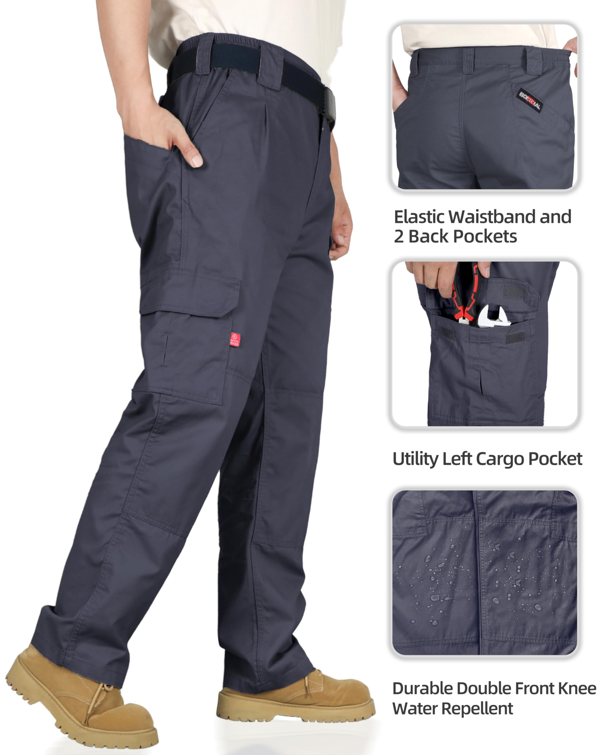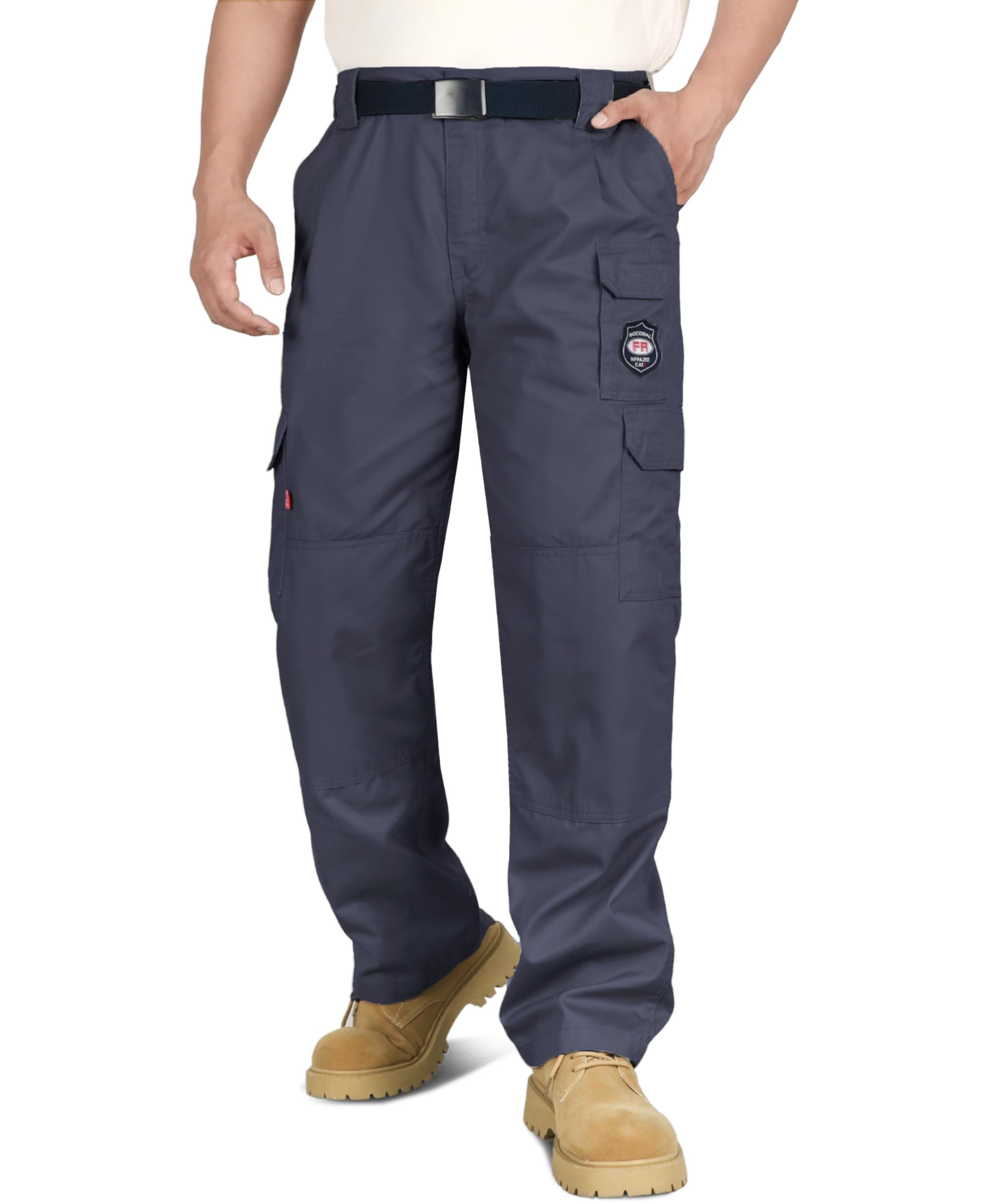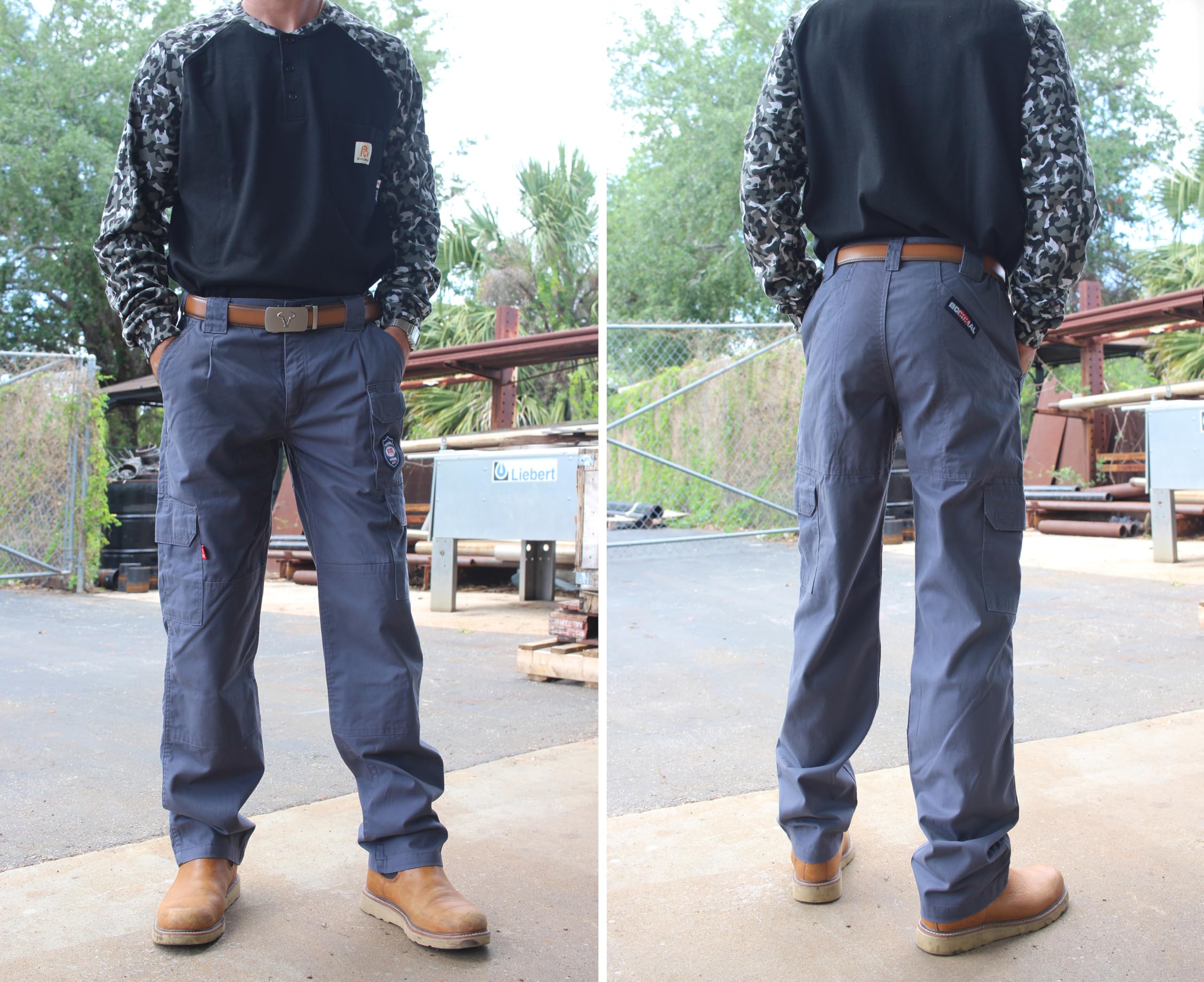 FASION AND COMFIT:This FR work Pant has 7 Pockets and elstic waist band, provides a Perfect and comfortable relaxed Fit.Also soft and fashionable.We did prewash/ preshrunk and wrinkle-free.Machine wash No shrink! Double needle stitching on outseam. Left and right cargo pockets at the thighs with flaps to keep items secure.