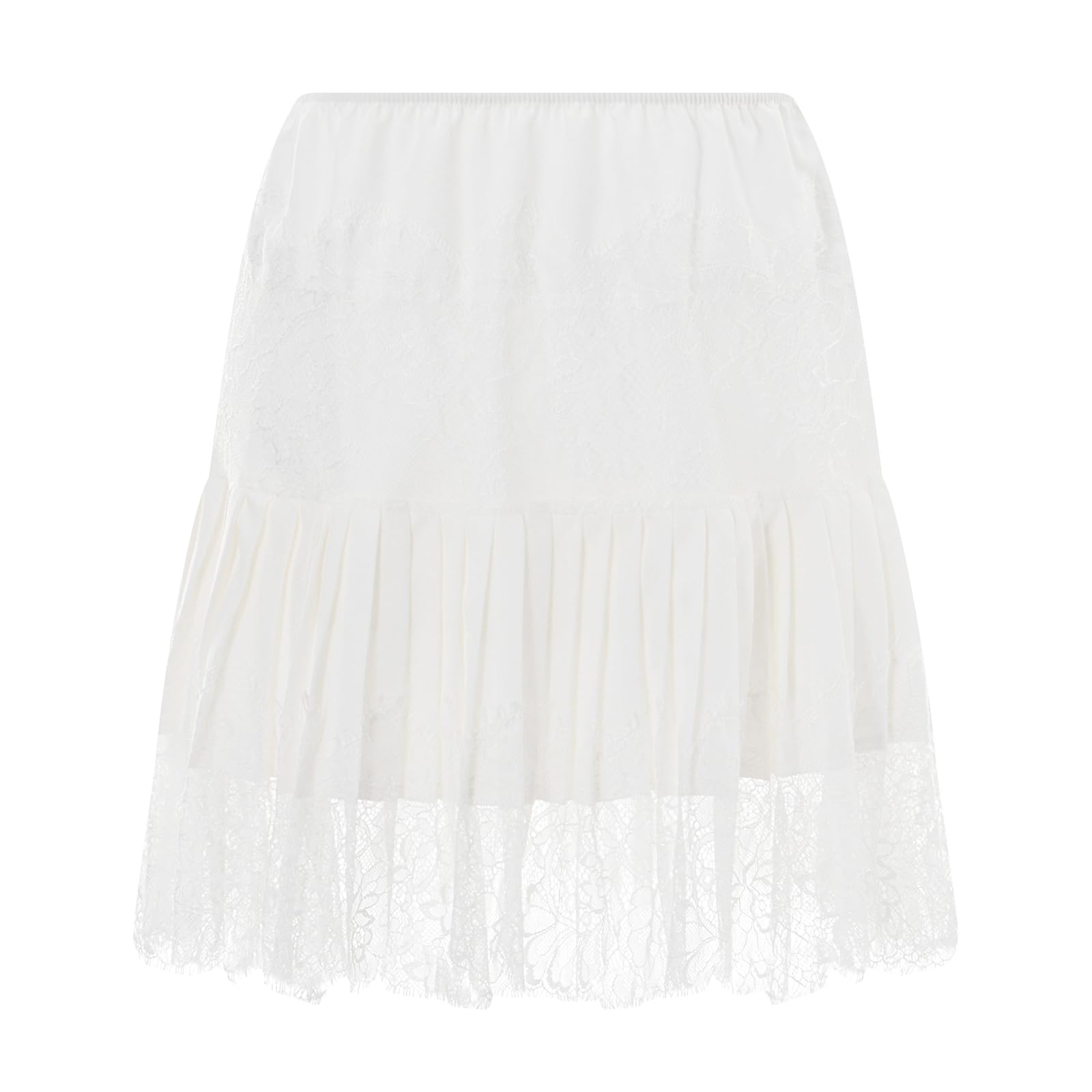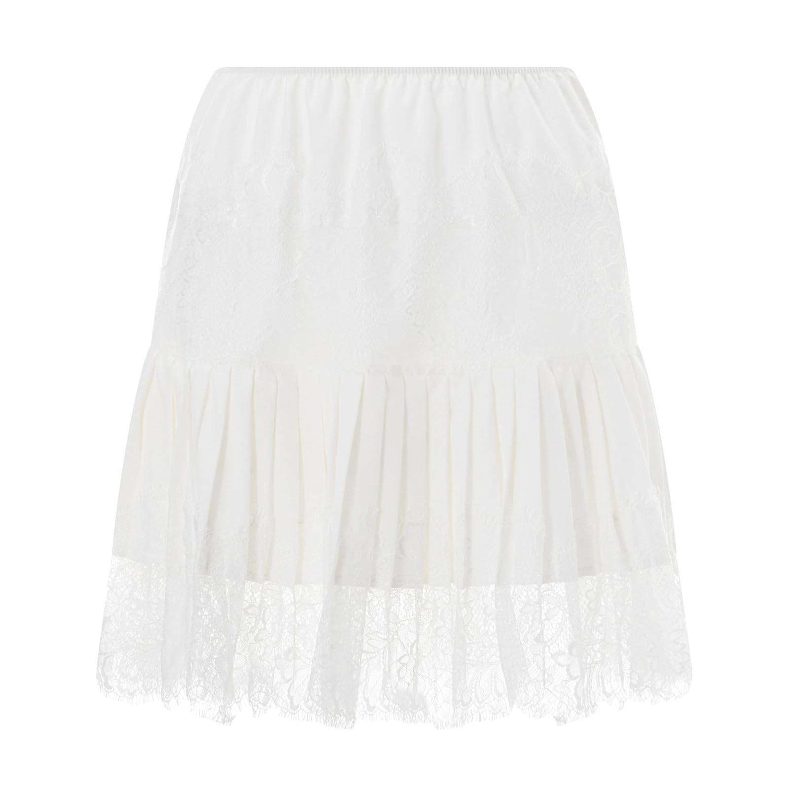 Style: Women y2k ruffle mini skirt, mid rise pleated short skirt, A line flowy half slip undershirt, lace trim tiered layered mini skirts, this lace mini skirt can be layered up or down for effortlessly, perfect to pair with any outfits.
