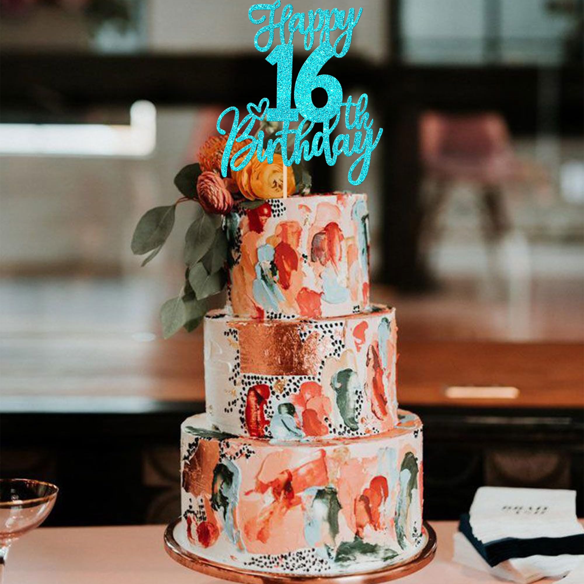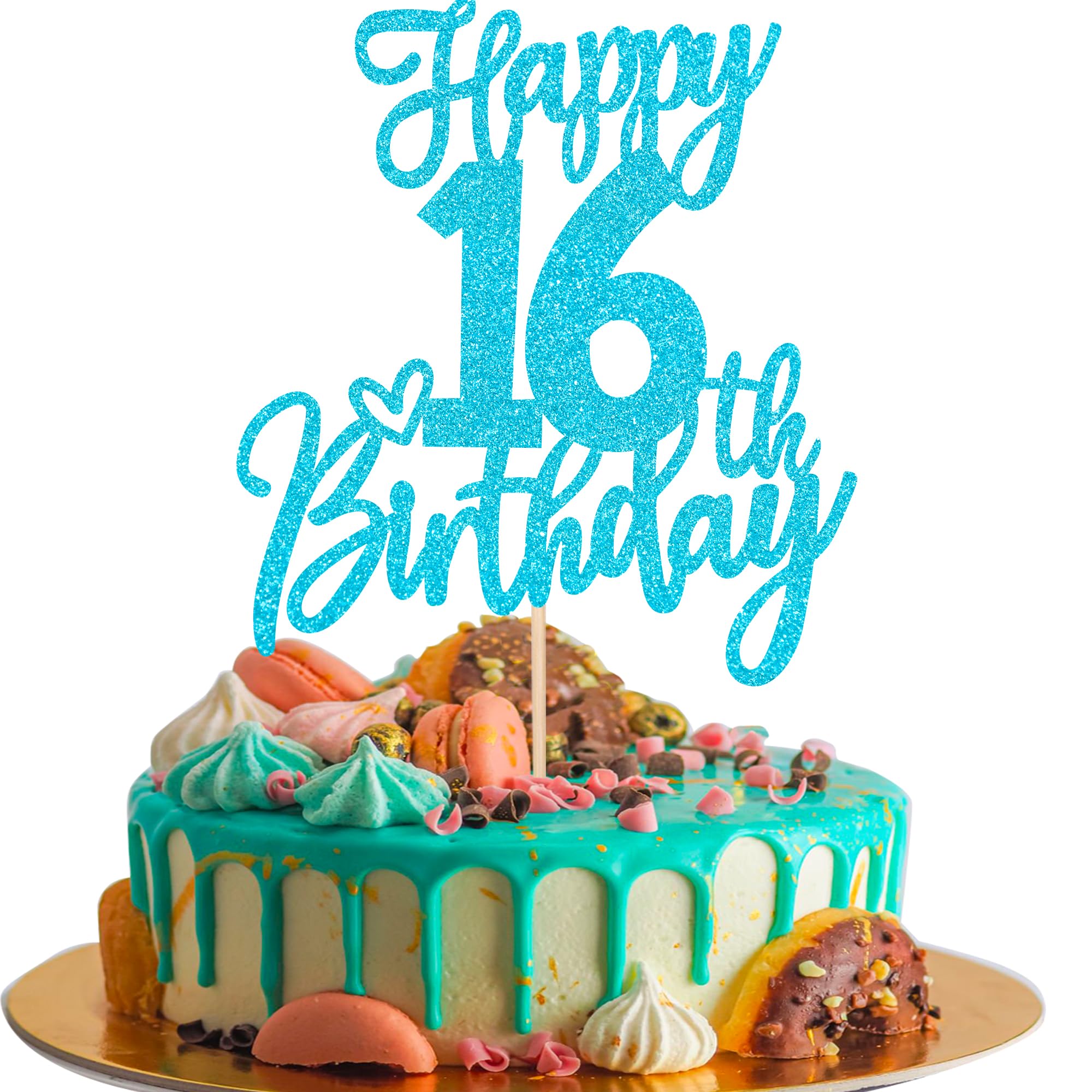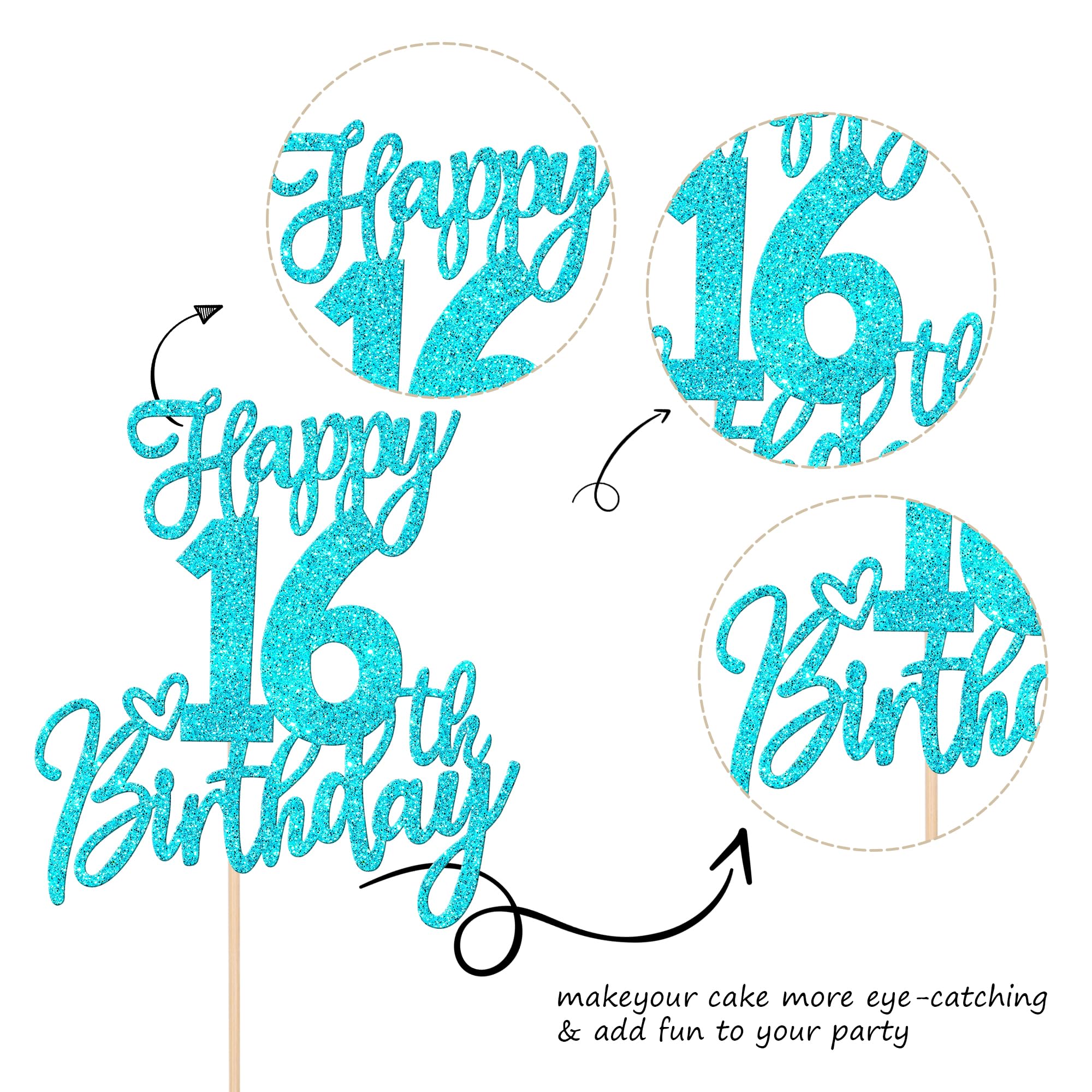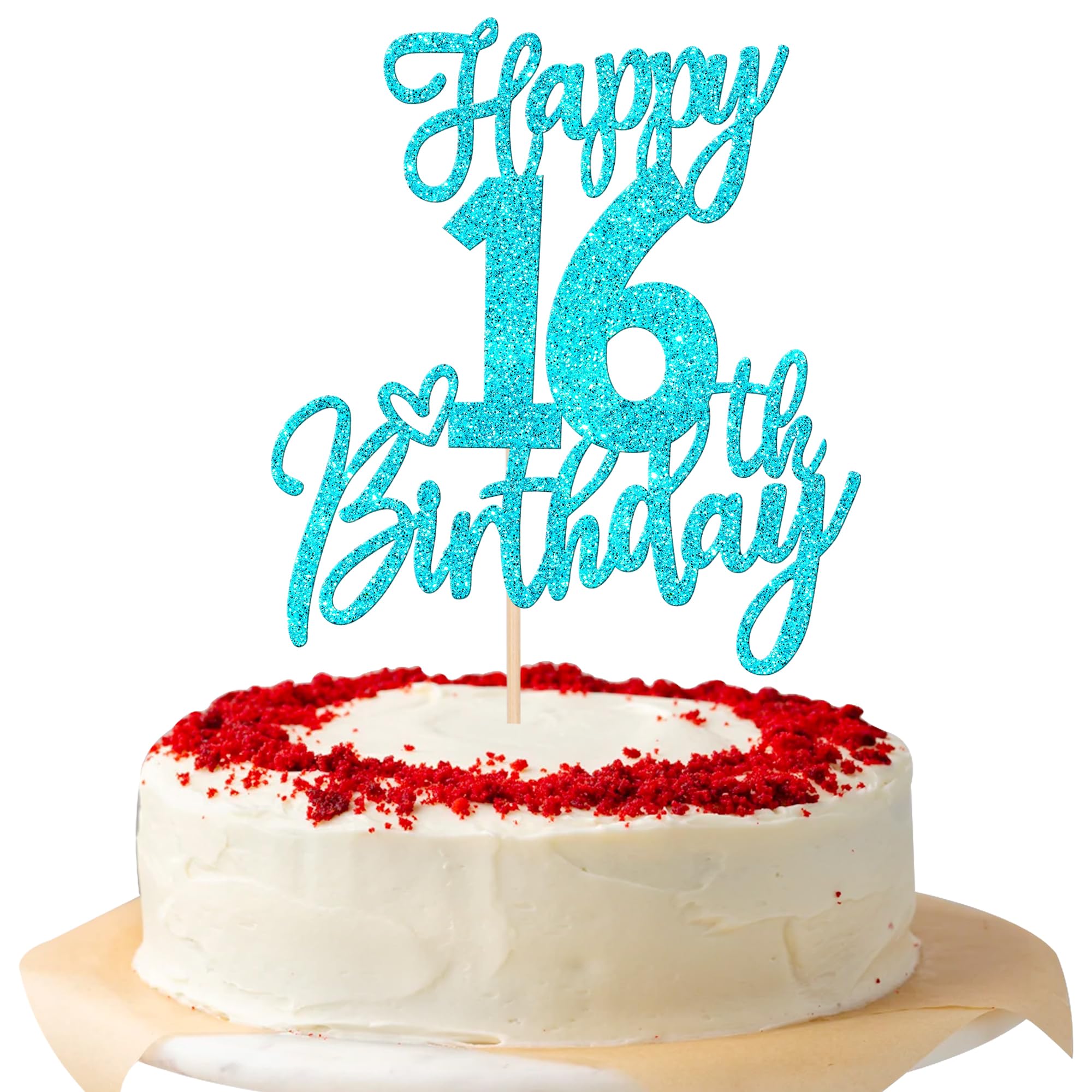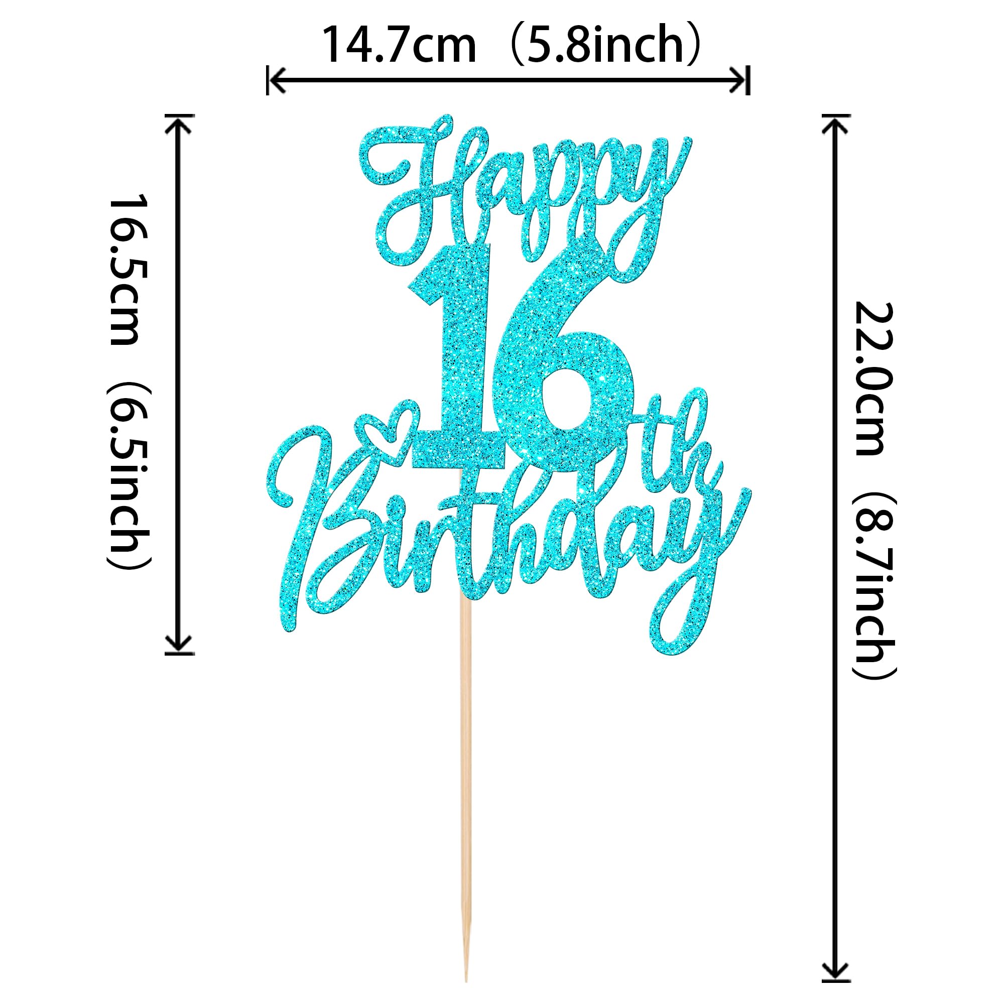 Happy 16th Birthday Cake Topper for Happy 16th Birthday Theme Party Cake Decorations Supplies Perfect for happy 16th birthday theme party,cheers to 16 years theme party,16th anniversary theme party cake decorations supplies. Pack of 1 pcs. The size is W 5.8 inch * H 8.7 inch / W 14.7 cm * H 22 cm ( with stick ) Made of high quality paper card stock and food grade sticks,thick and sturdy. This cake topper is one side glitter, another side is white, and this is intended for decoration only, please do not put them in oven or microwave. If the item you received has any defects, please contact us for refund.we will deal with it within 24 hours.