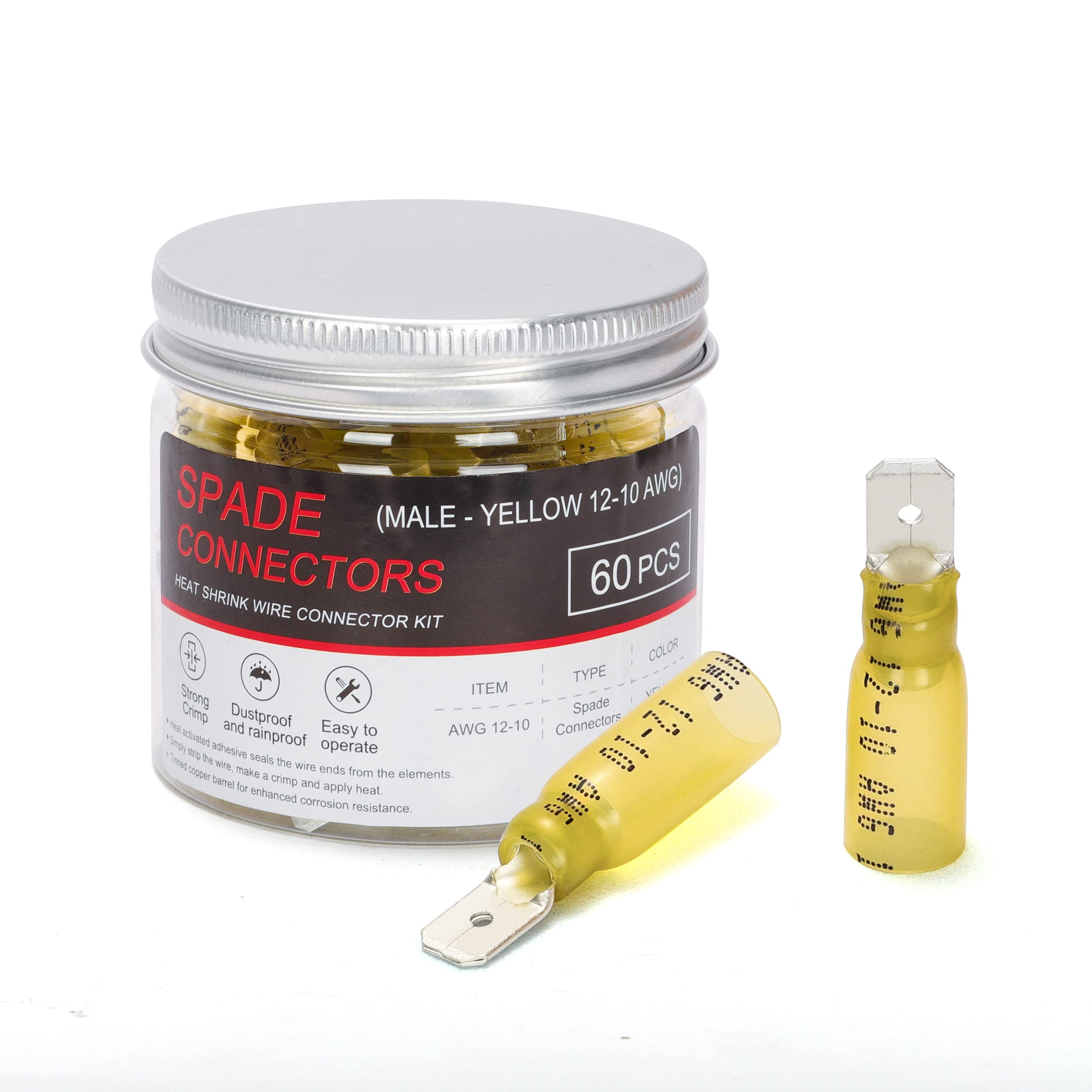 Unyielding Protection:Unlike cheap,low-quality connectors,these high-quality thick 3:1 heat shrink tubing of heat shrink connectors won't puncture and break when crimping.After heating,the end penetrates enough hot melt adhesive to form a firm seal.Helps retain the wire in the connector much better than just a standard crimp style