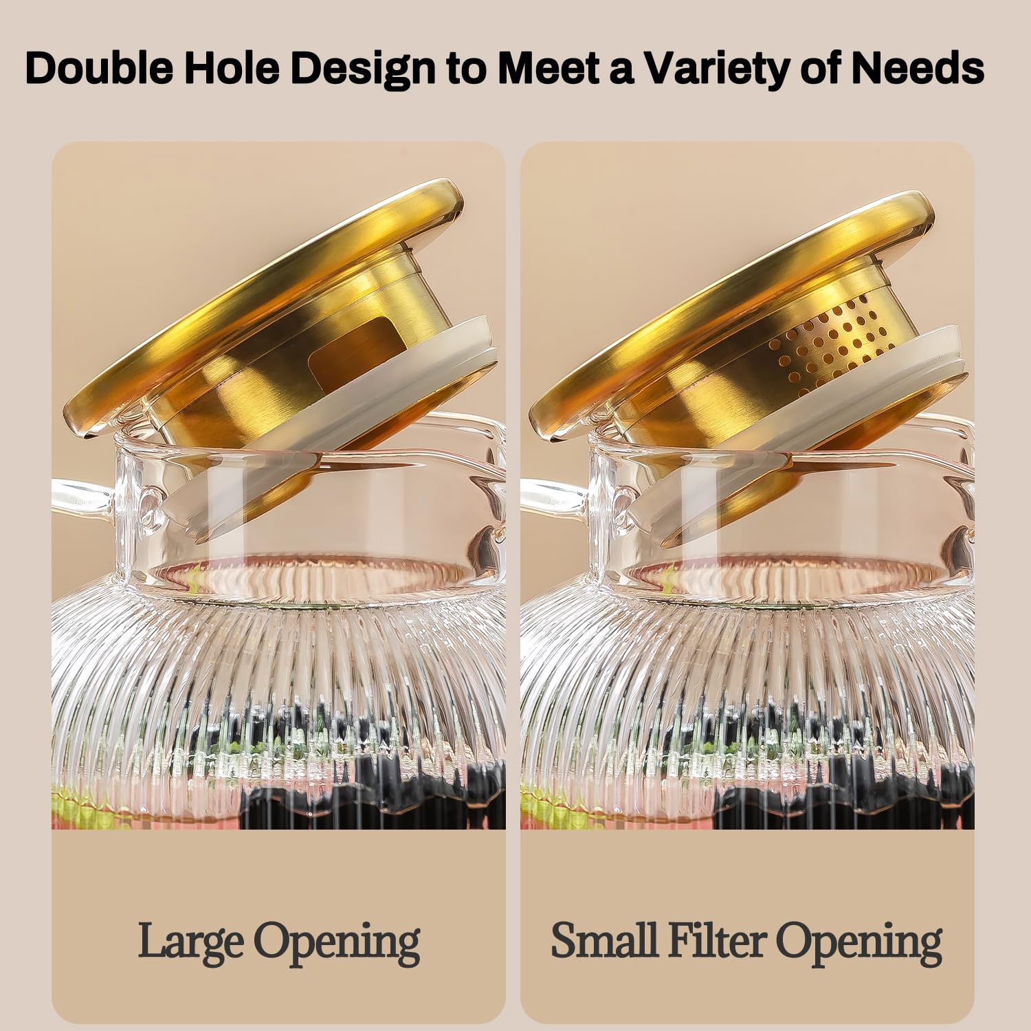 【100% STAINLESS STEEL LID WITH TWO OPENINGS】The lid is made of 100% stainless steel, so whether you use it for three or five years, you don't have to worry about the rust of the lid and the lid has two openings, which can be turned to pour water or the other side to filter beverages. The soft silicone seal keeps the lid firmly on the lid to prevent leakage.