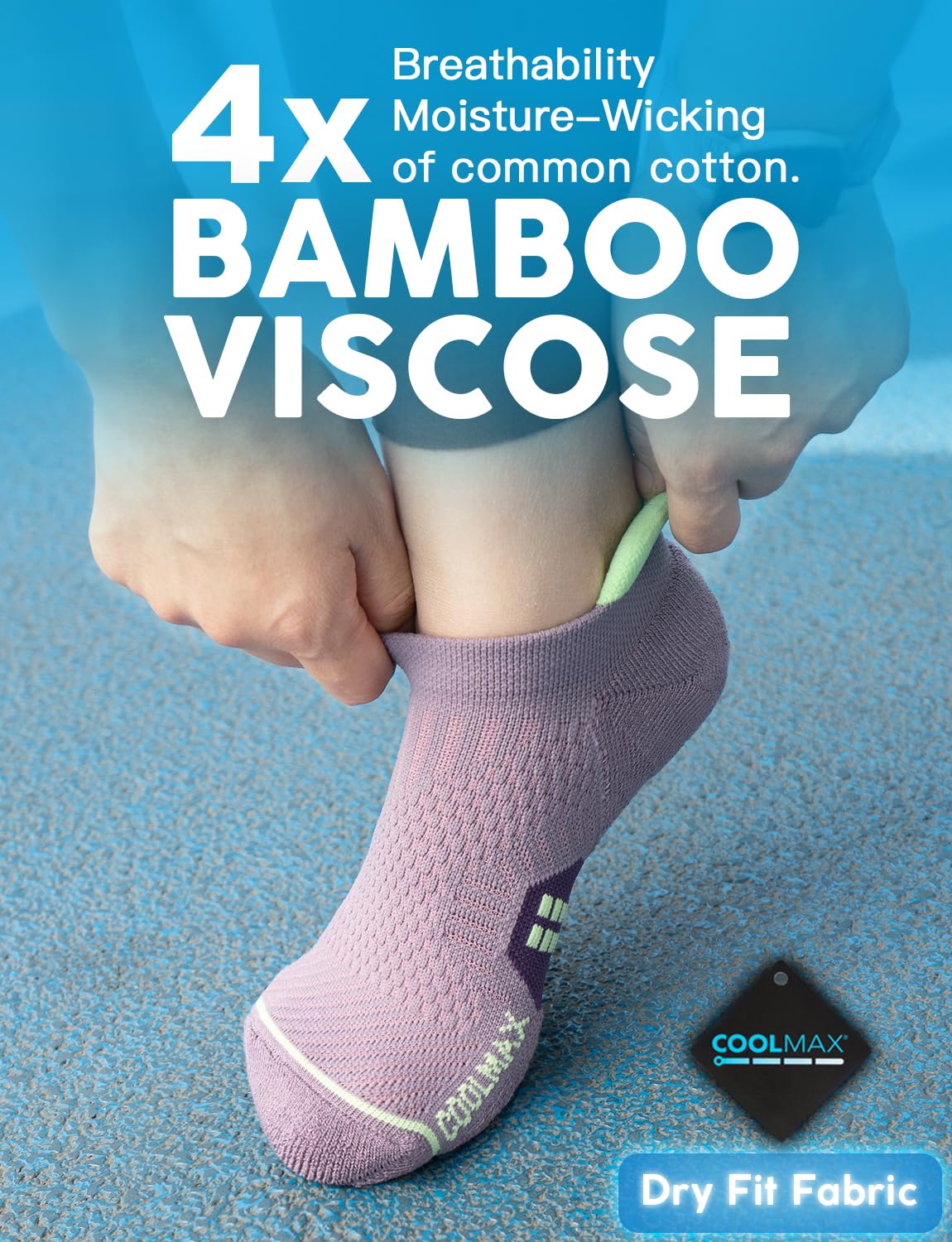 【Moisture-Wicking & Odor-Free】: Made from a blend of Coolmax yarn and bamboo viscose, these socks are four times more effective at wicking moisture than cotton socks. Coolmax absorbs sweat faster, keeping your feet cool and dry, while bamboo viscose prevents odors for fresh feet throughout your run.