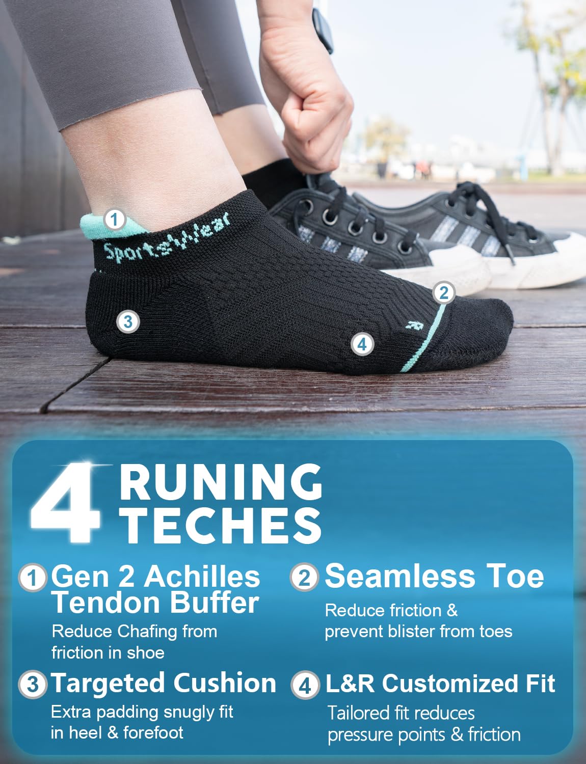 【Innovative Anti-Blister Design】: Engineered with reinforced padding at the heel and forefoot to protect against shoe friction. Includes seamless toe closure, targeted cushioning, ankle protector, and Achilles tendon buffer to prevent blisters and ensure a smooth, irritation-free run.