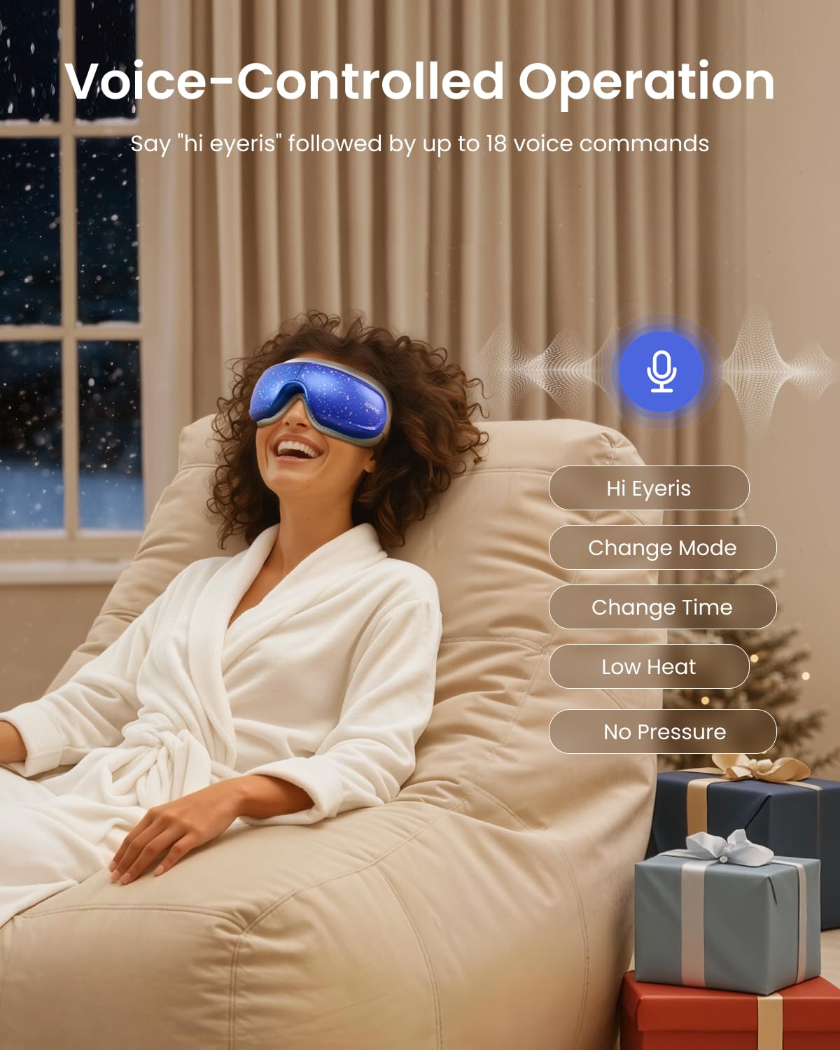 Upgraded Voice-Activated Operation: Revolutionize your self-care experience with the ease of voice control. With an extensive repertoire of 18 voice commands—all without lifting a finger, the RENPHO EYERIS 3 allows you to effortlessly fine-tune your massage settings.