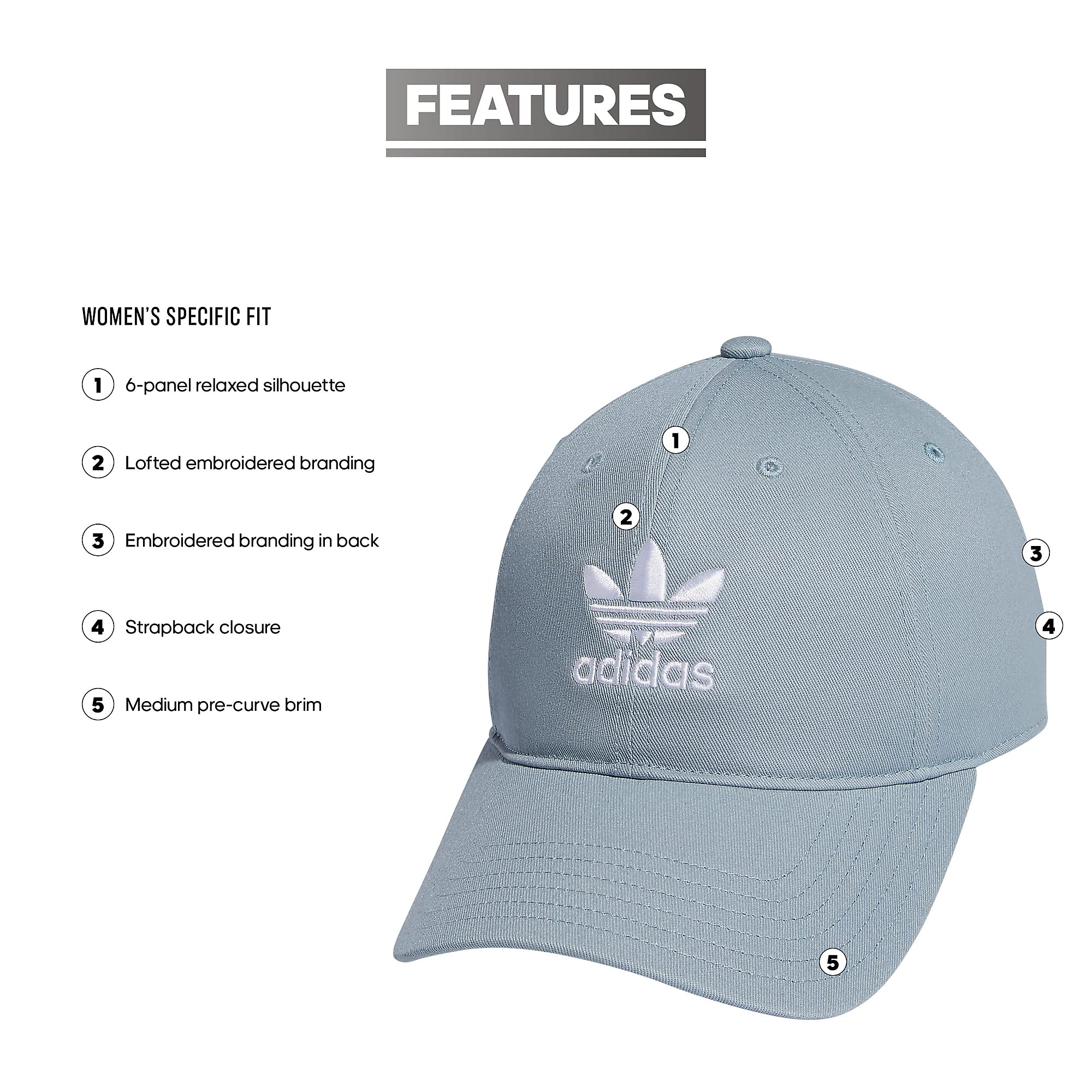 Description This women's cap offers a sporty look for everyday wear. It's made of nylon in a classic six-panel design. A woven patch on the front shows off an adidas Trefoil logo.