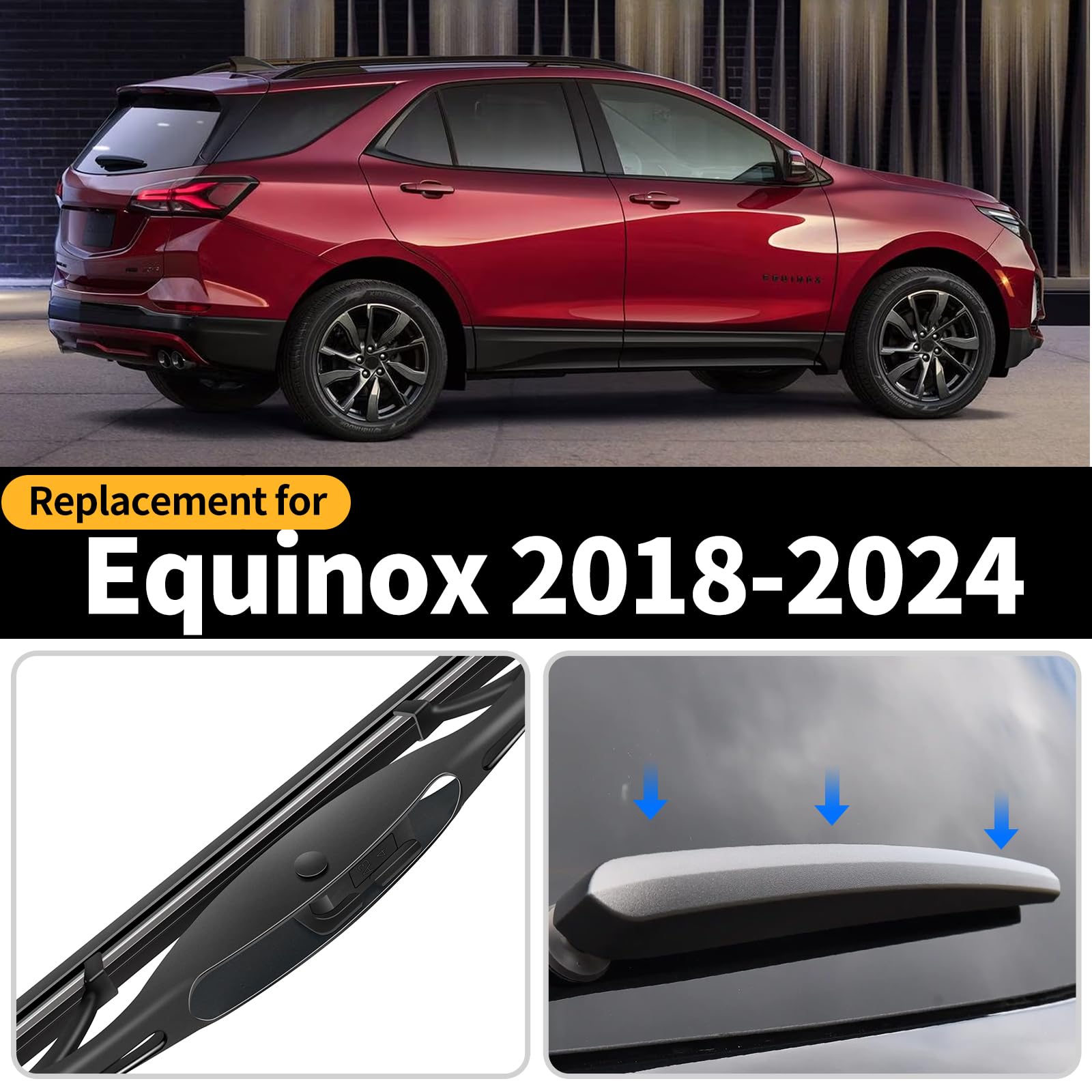 Packing List: Rear windshield wiper and arm set for Chevrolet Equinox 2018-2024. .