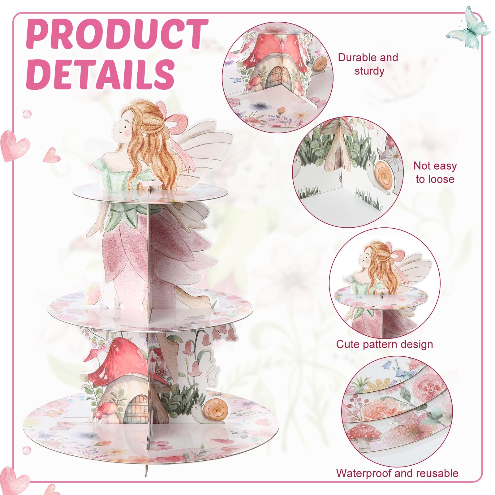 What You Will Get: there is 1 piece of 3 tier cardboard cupcake stand, which can be put into use to meet your daily use demand; Its special fairy design enhances its aesthetic appeal, providing you with both decorative and practical functions, which will easily draw others' attention