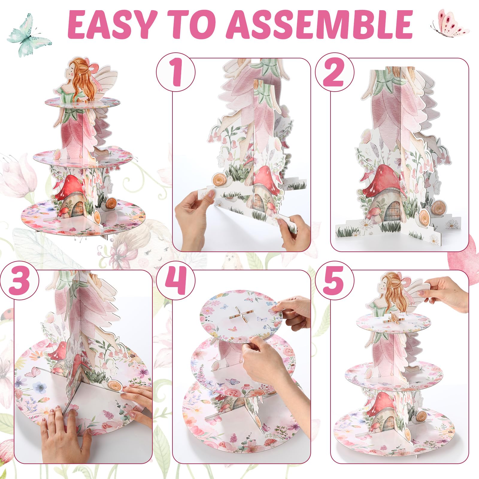 Quick And Stable Assembly: the fairy cupcake stand is easily assembled; You don't need to worry about complicated procedures or the need for tools; The structure is also designed to allow easy clean up after use; It's easy and convenient