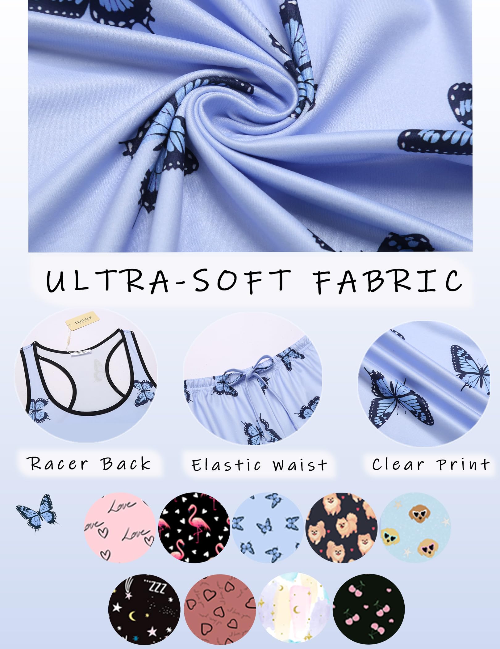 VIBRANT PRINTS: The women tank top pajama set stand out with colorful prints, whether you prefer to the retro Y2K trend or the modern dopamine style, you can find it here! It's not only meets the need of daily wear, but also favored by influencers. experience: the soft sleep and keep cool in hot summer.