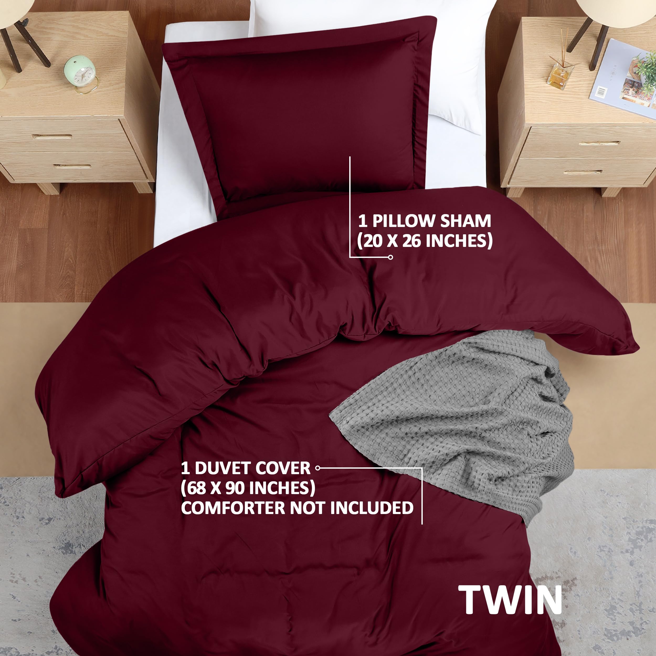 Bedding Duvet Covers - Each pack Includes a twin duvet cover measuring 68 by 90 inches with a zippered closure, 1 pillow case (shams) measuring 20 by 26 inches with a 2 inches flange which adds a classic decorative accent to the pillow shams (Comforter not included).