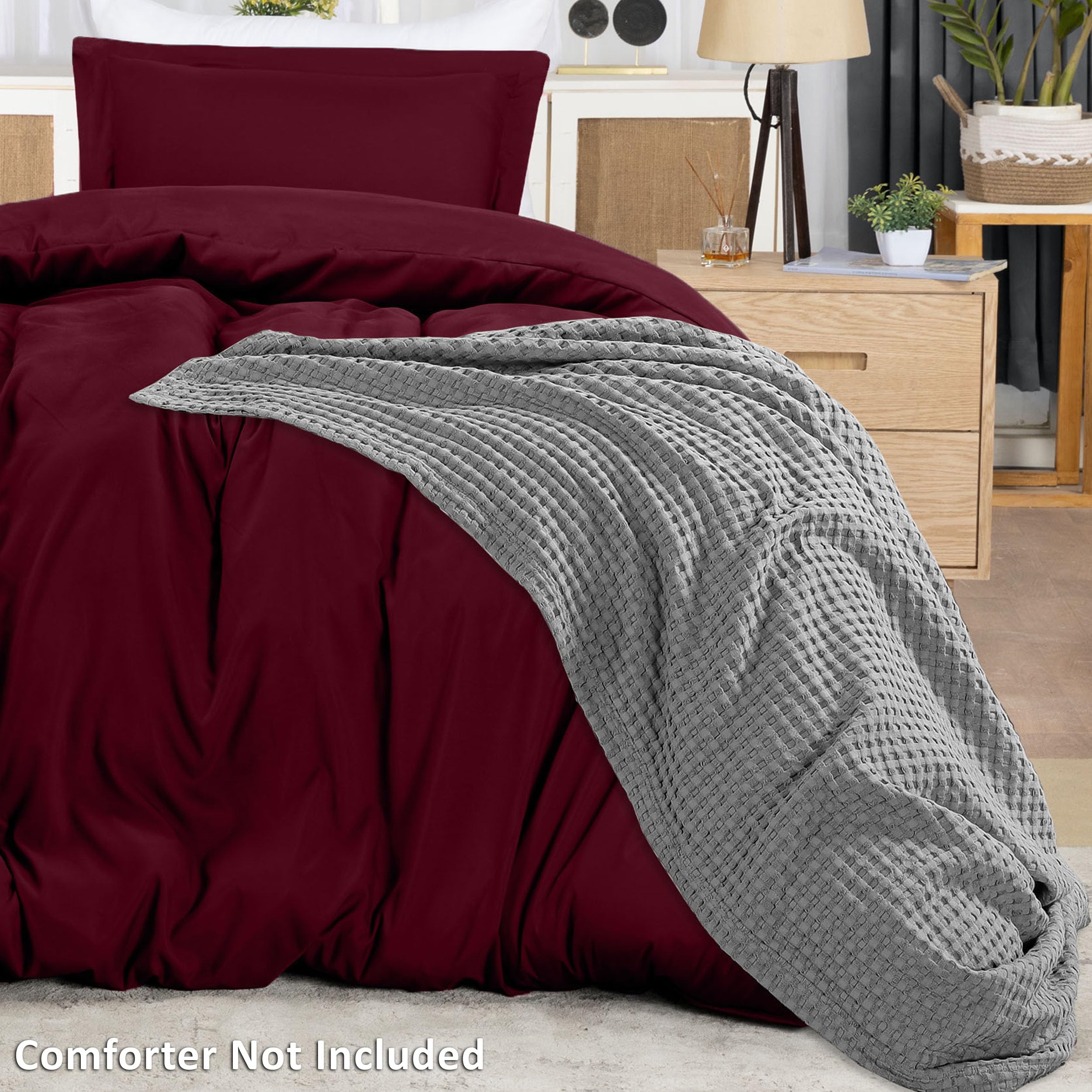 Perfectly sewn closure - The hidden zipper closure of the duvet cover set facilitates inserting your duvet into the cover and keeps it secure without shifting or bunching up. Additionally, the duvet cover features seven tie knots that keeps the comforter in place.
