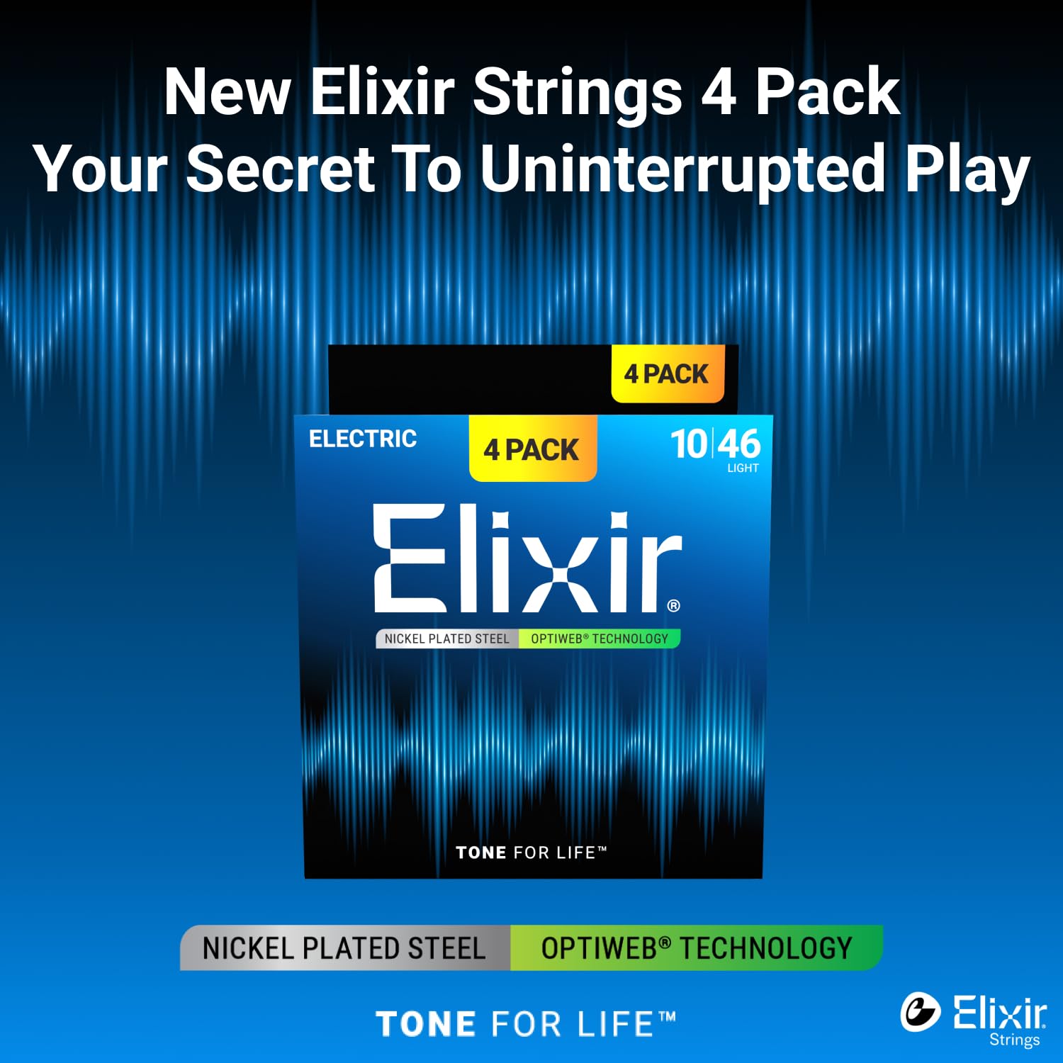 CONTENTS: 4 Pack of Elixir Strings, Electric Guitar Strings, Nickel Plated Steel with OPTIWEB Technology, Longest-Lasting Crisp Tone with Comfortable Feel, Light 10-13-17-26-36-46