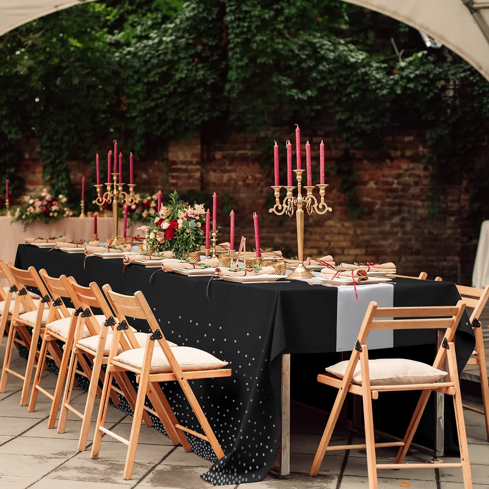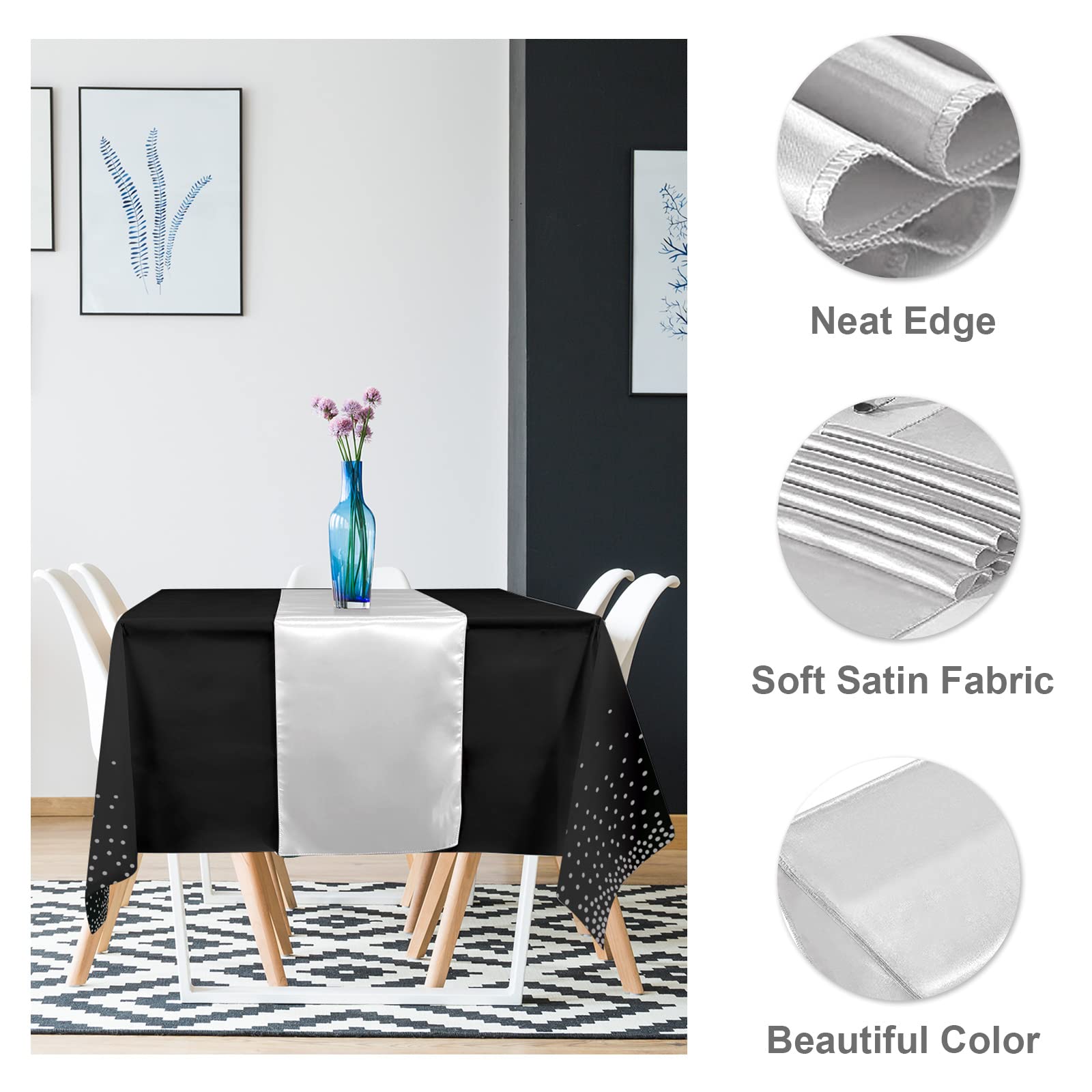Classic design: the black silver rectangle table cloth is designed with the black colors background and printed with silver foil polka dot,the table runner is made of satin, silky and smooth, thick and durable, which is not easy to wrinkle or deform, which can add more charms to your dinner table