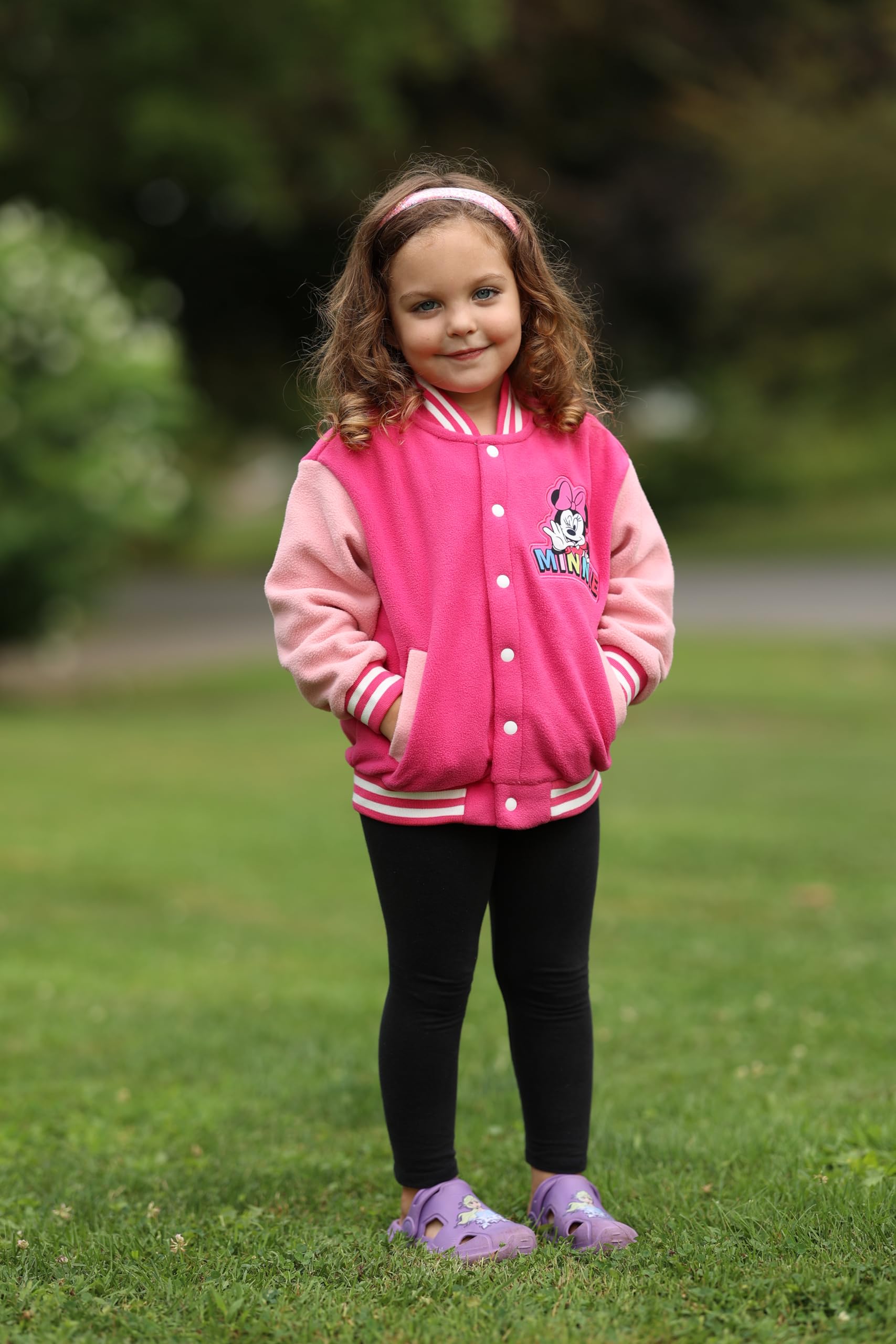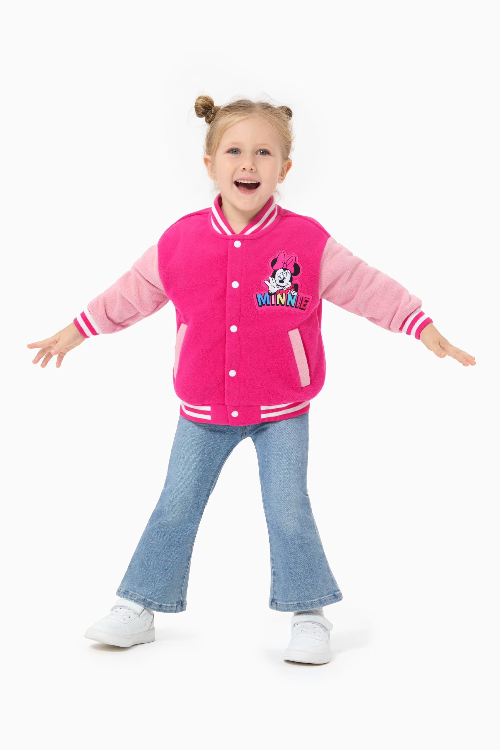 Charming & Cozy Design: Let your little one stay stylish and warm with this adorable Disney Minnie Mouse varsity jacket! Featuring Minnie in her signature pose and the colorful "MINNIE" lettering, this pink jacket is both playful and cozy. The soft fleece material, striped cuffs, and pink sleeves add a sporty touch. Perfect for kids aged 3-10, this jacket is ideal for school, casual outings, or any Minnie Mouse fan event, offering both comfort and Disney charm