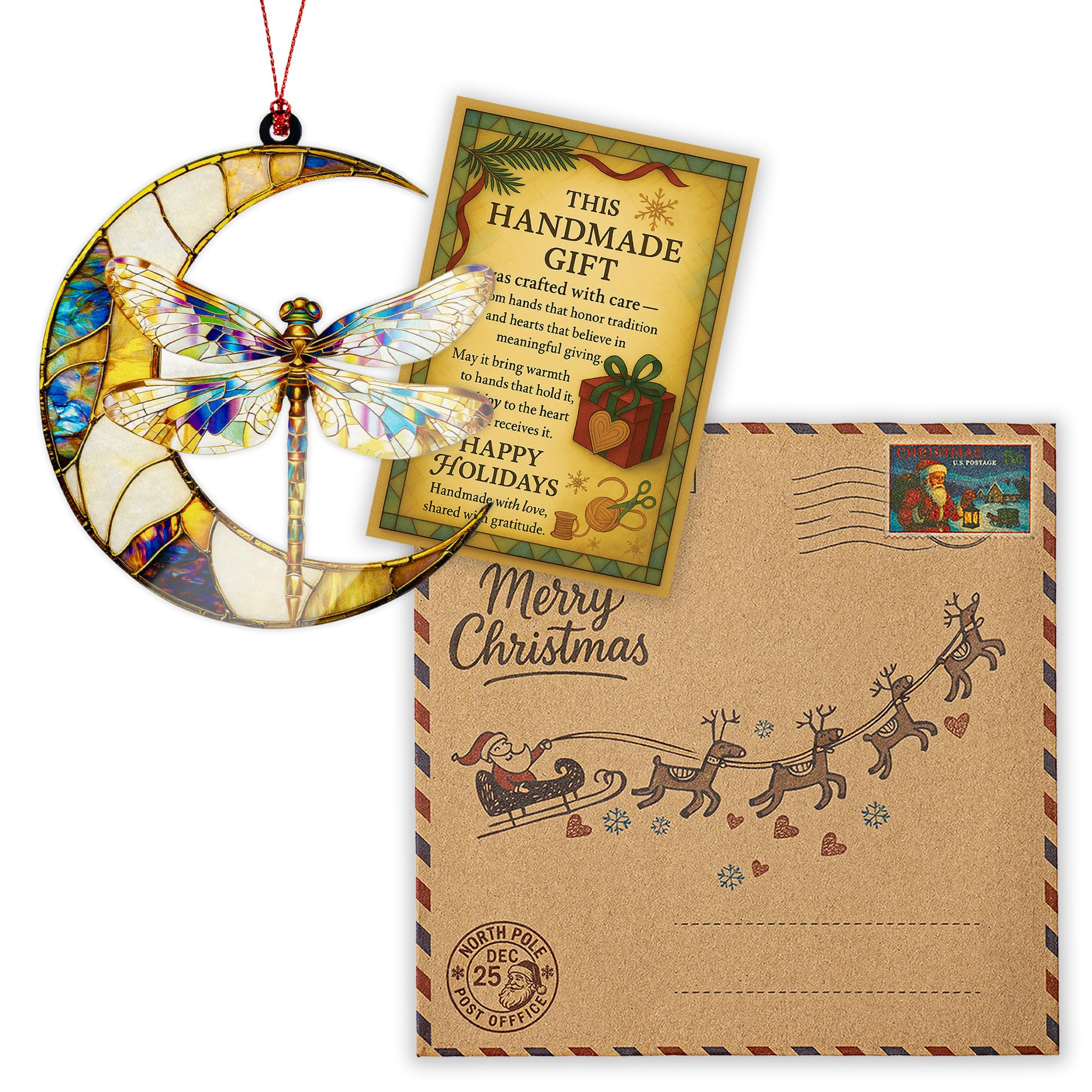 š Enchanting Dragonfly Moon Ornament With Suncatcher Effect: Featuring a graceful dragonfly resting on a crescent moon, this acrylic ornament brings a shimmering suncatcher effect to any space. Itās a striking mix of nature, elegance, and celestial charm - perfect for holiday decorating or year-round inspiration.
