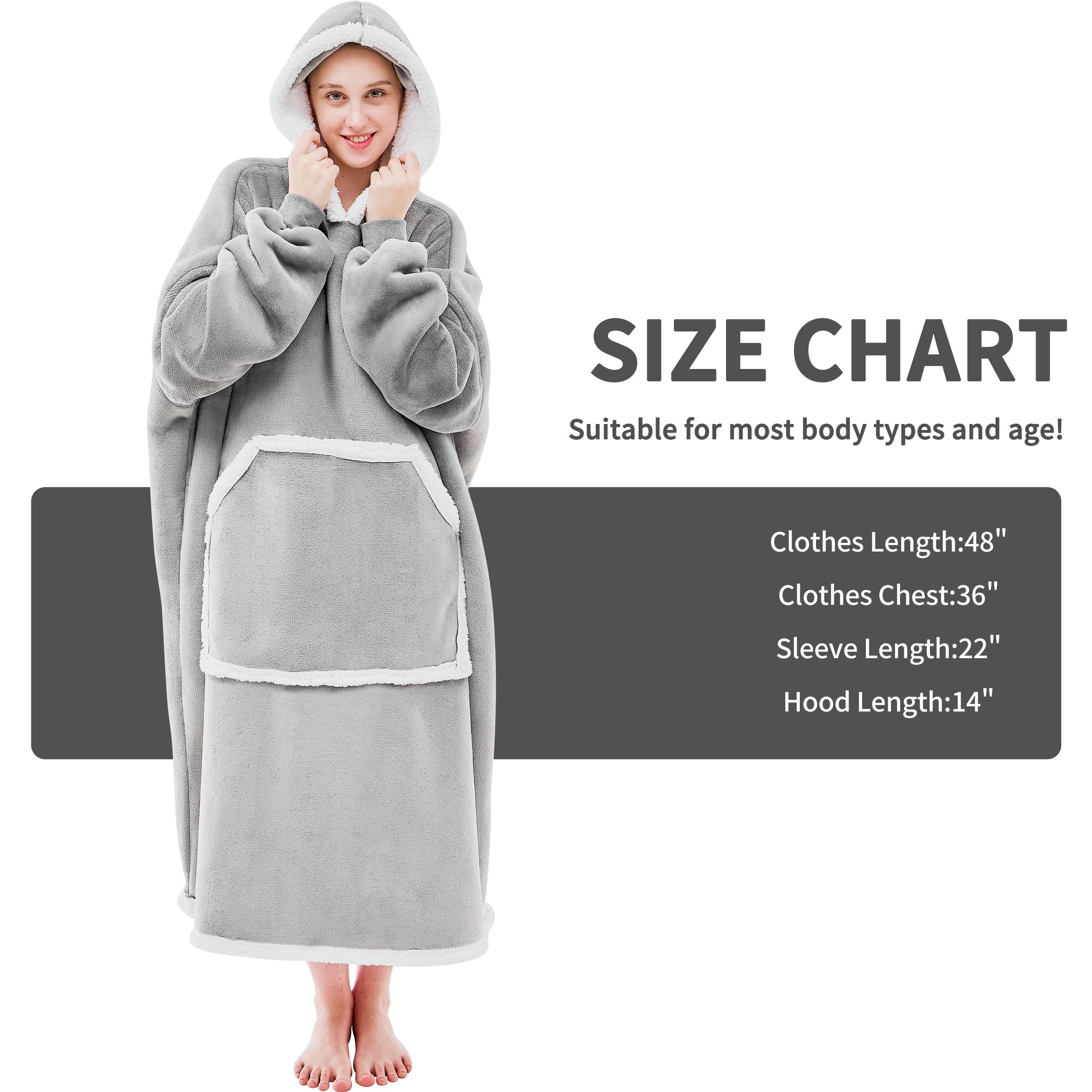 EASY CARE: Sincerely recommend that you wash this giant cozy blanket hoodie separately before you use it. Machine washable wearable blanket in cold water, tumble dry on low heat, no ironing or expensive cleaning required! This oversized wearable blanket hoodie stays the same after every wash