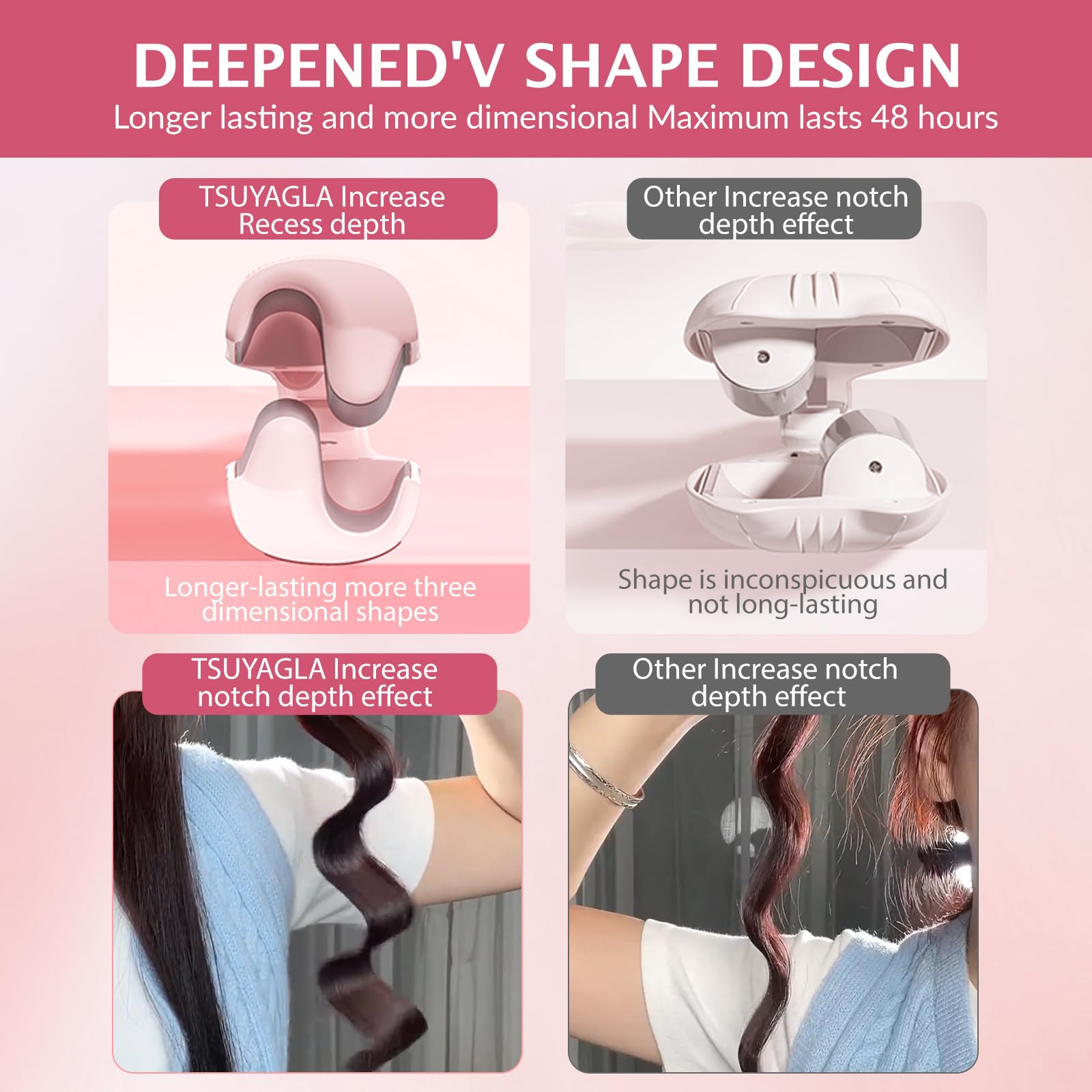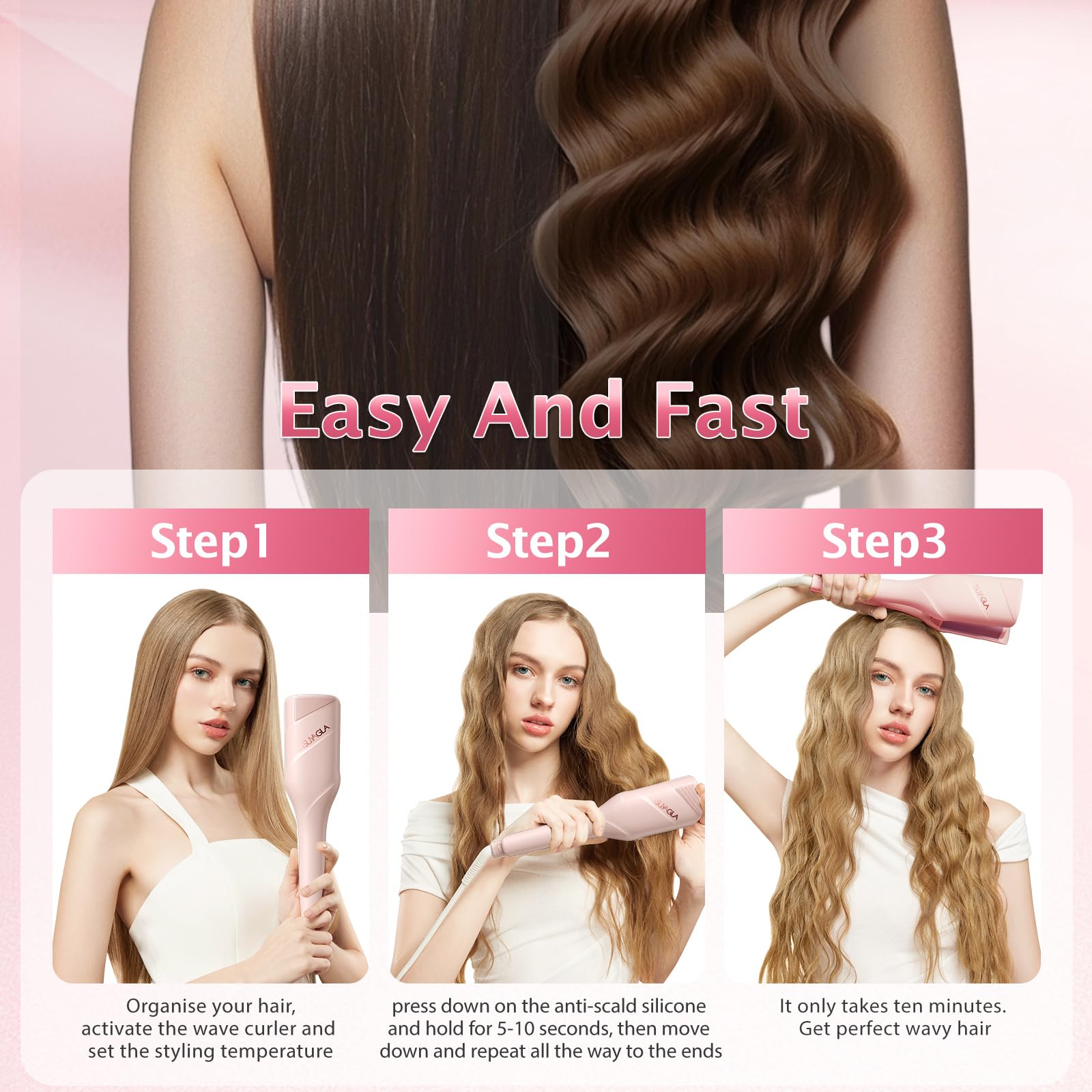 ANTI-SCALD MATERIAL:TSUYAGLA wave curling iron is fully wrapped in insulation with no exposed barrels. anti-scald thickened silicone pad on the top protects your fingers and neck from burns while in use, allowing you to create stunning mermaid waves safely and easily