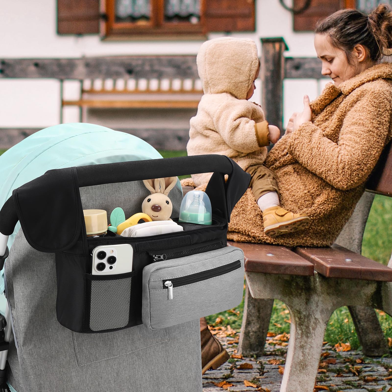 Multiple Usage Methods : It can be hung as a stroller cup holder organizer on the stroller. When you don't need to use a stroller, you can also install the accompanying strap and carry this organizer bag for easy outing.