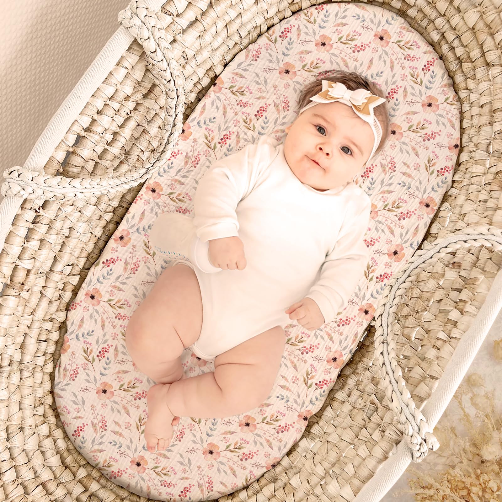 Universal Fit: With deep 4" pockets and stretchy elastic edges, these sheets (33" x 17" x 4") universal fit most bassinet mattresses (29"–33" long, 14"–17" wide, 1"–2" thick), fit for the Halo Bassinest Swivel Sleeper, 4moms MamaRoo Sleep Bassinet, and other similar-sized brands.