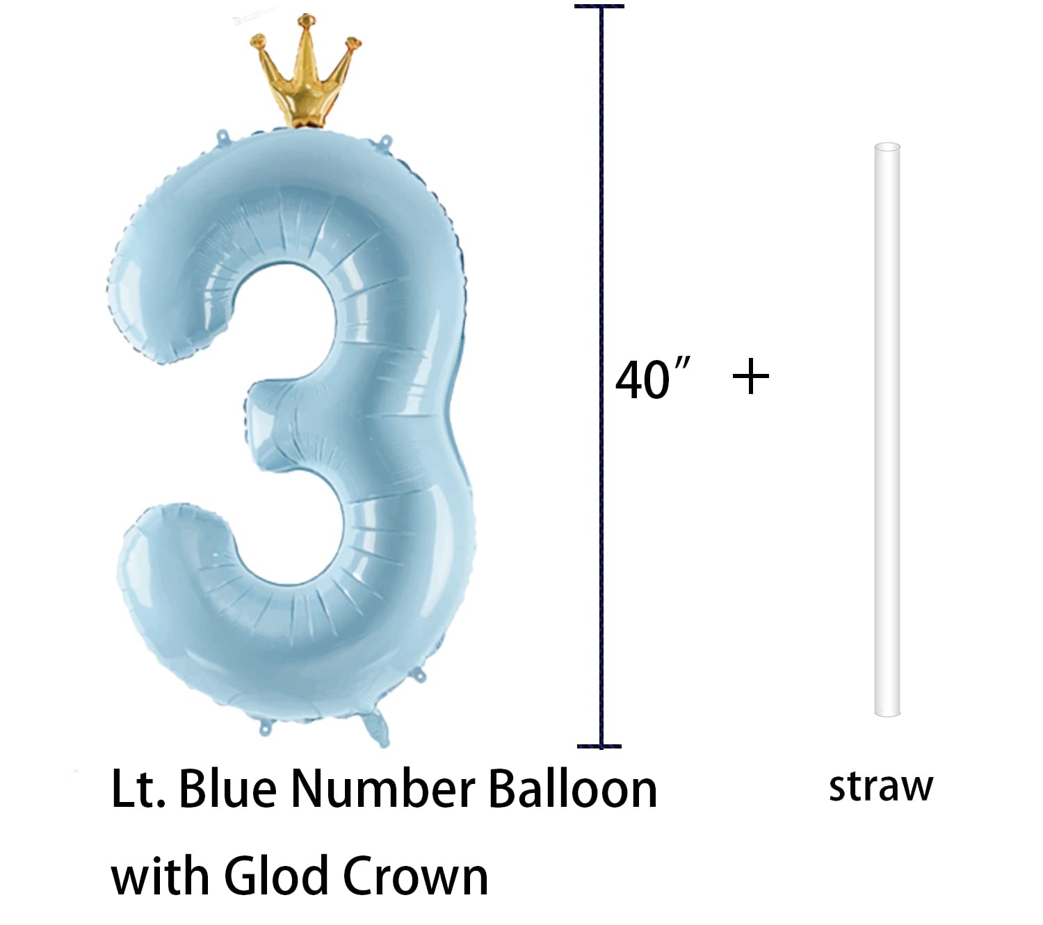 About GIFLOON: Welcome to GIFLOON online! Your One Stop Party Shop! GIFLOON is an manufacturer company, committed to Events & Gifts Supplies, Party Supplies, Mylar foil balloon, Number balloons, Birthday, Wedding, Baby shower, Anniversary, Grad Party Decorations. Product Information: Package include: 1pcs number 3 balloon+1pcs Straw Size: 40 inch large Color: Light Blue number balloon with gold crown How to use foil Number Balloon? ~ Find the self-sealing valve, Number balloon has a self-sealing valve, Which is the place to inflate ~ Use a straw or pump to inflate a number balloon with helium or air, number foil balloons can float with helium, while it will not float when filled with air ~ Inflate slowly, just fill 95% of the balloons space that could allow the balloon to expand completely ~ After filling, pinch the self-sealing valve by hand to prevent the gas from leaking out ~ Foil balloon can be reused, use the straw to deflated balloons after party end Number 3 Balloon, Perfect for your birthday, anniversary and other events party decorations!