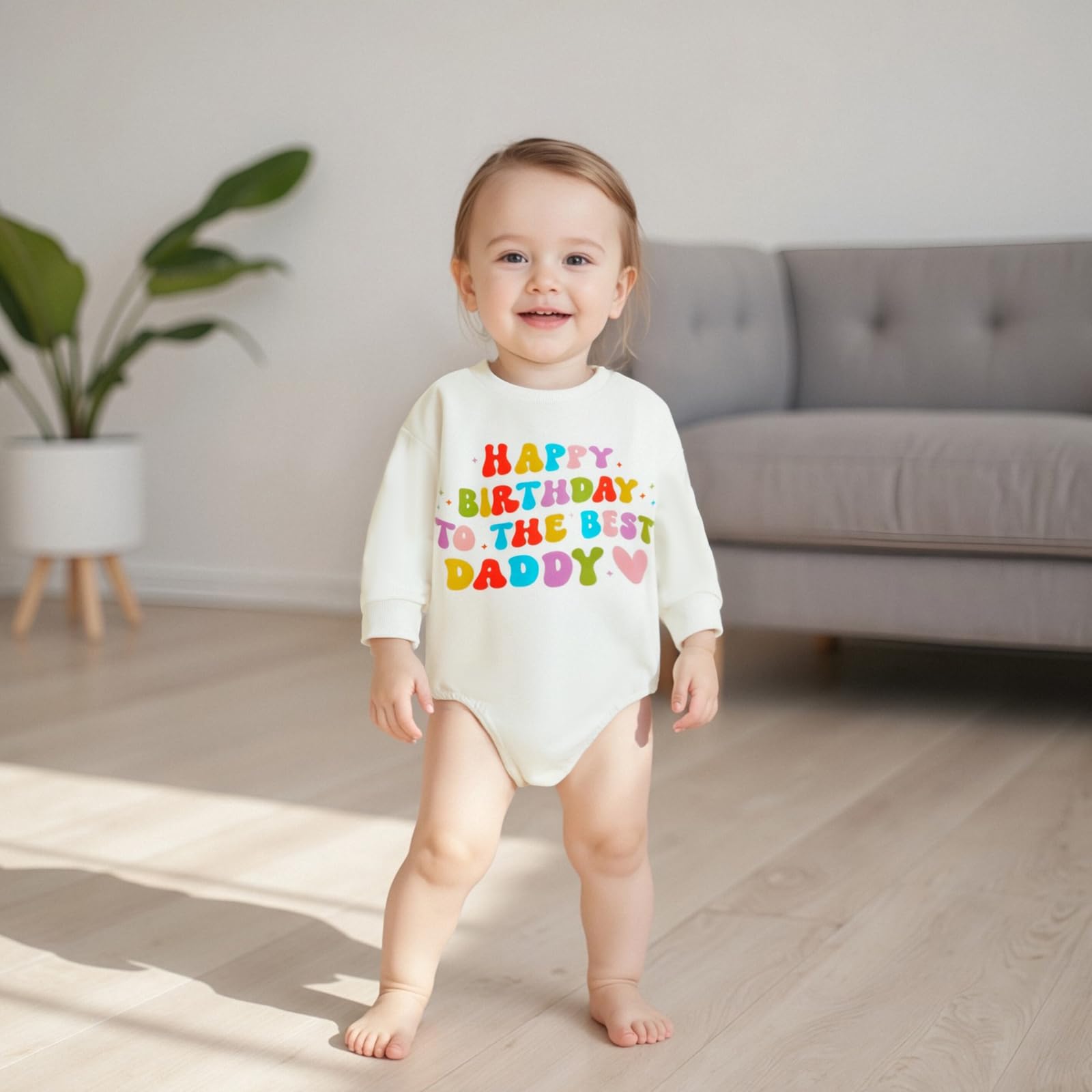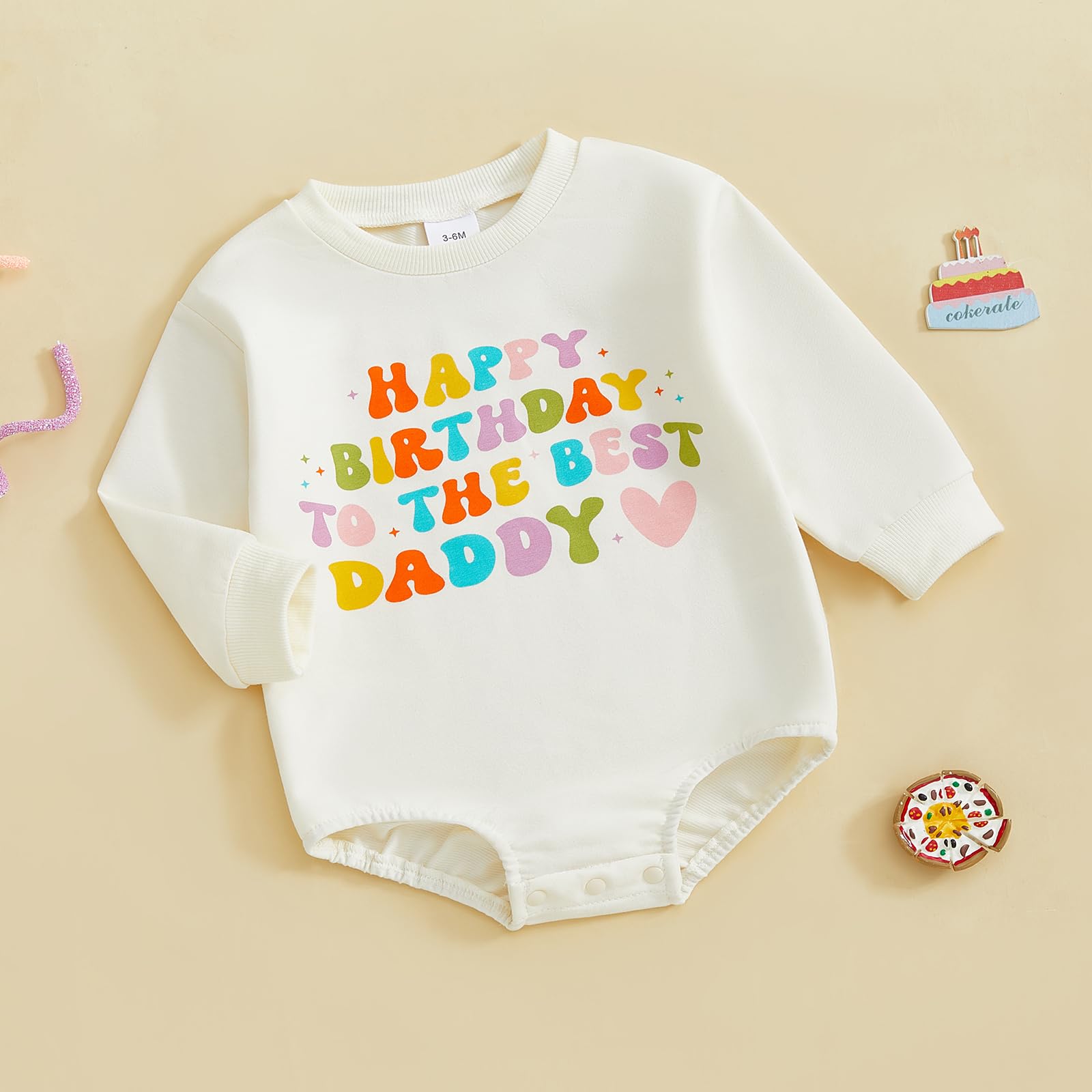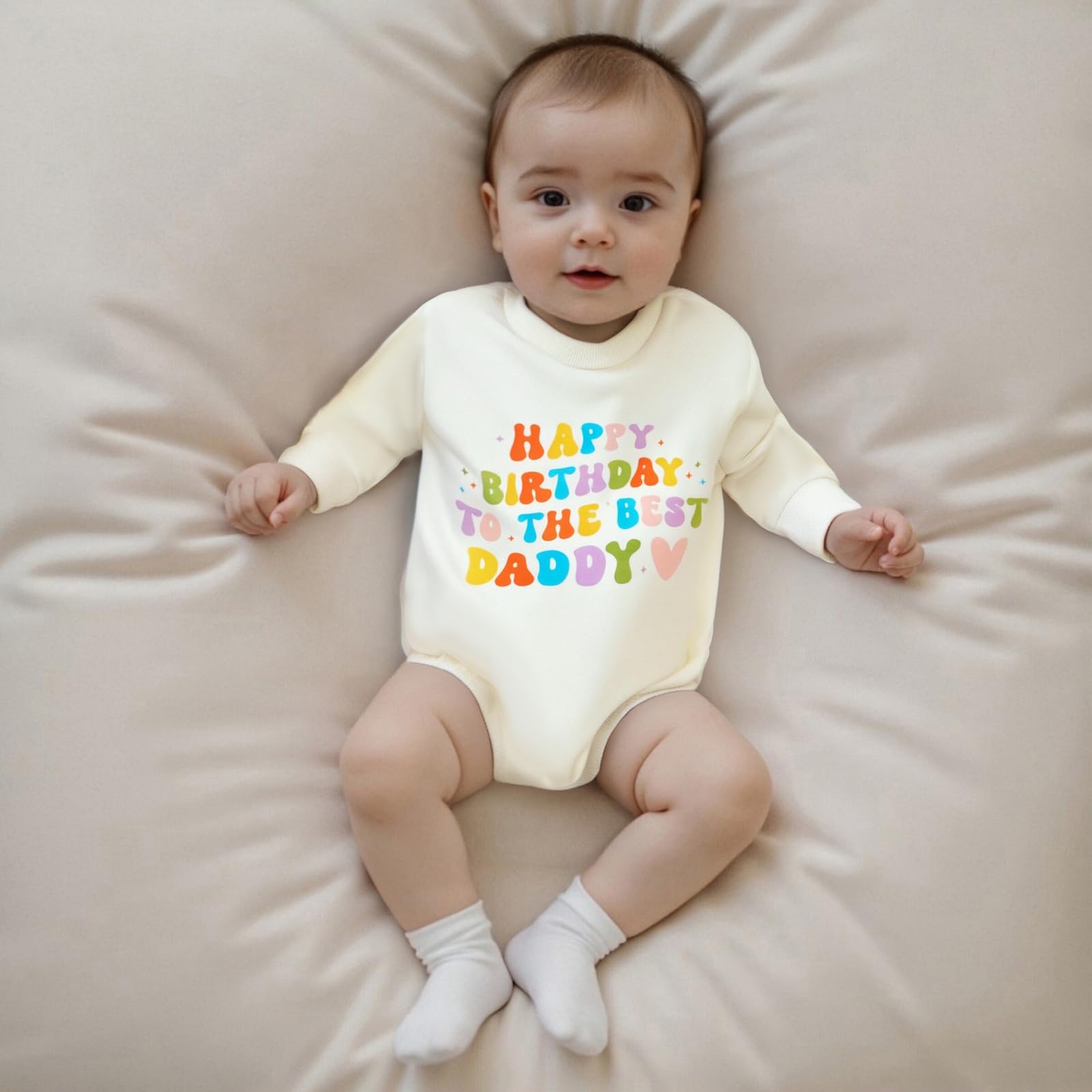 Design: Adorable baby girl boy long sleeve romper, crew neck, Happy Birthday To The Best Daddy/Mommy colorful letter print, oversized bodysuit overalls, snap closure for diaper change. Cute and chic baby girl boy bubble romper sweatshirt, makes your little one more lovely and attractive