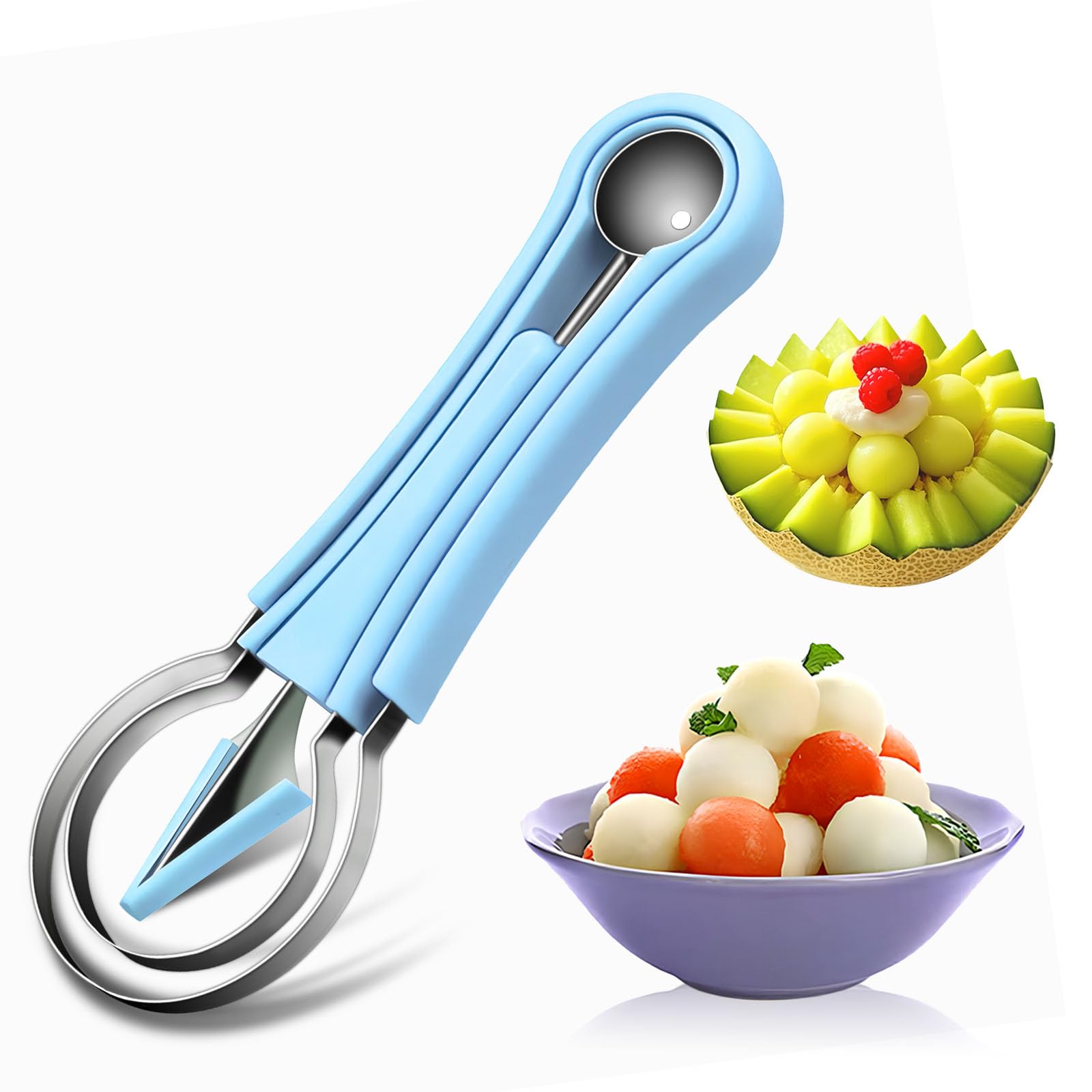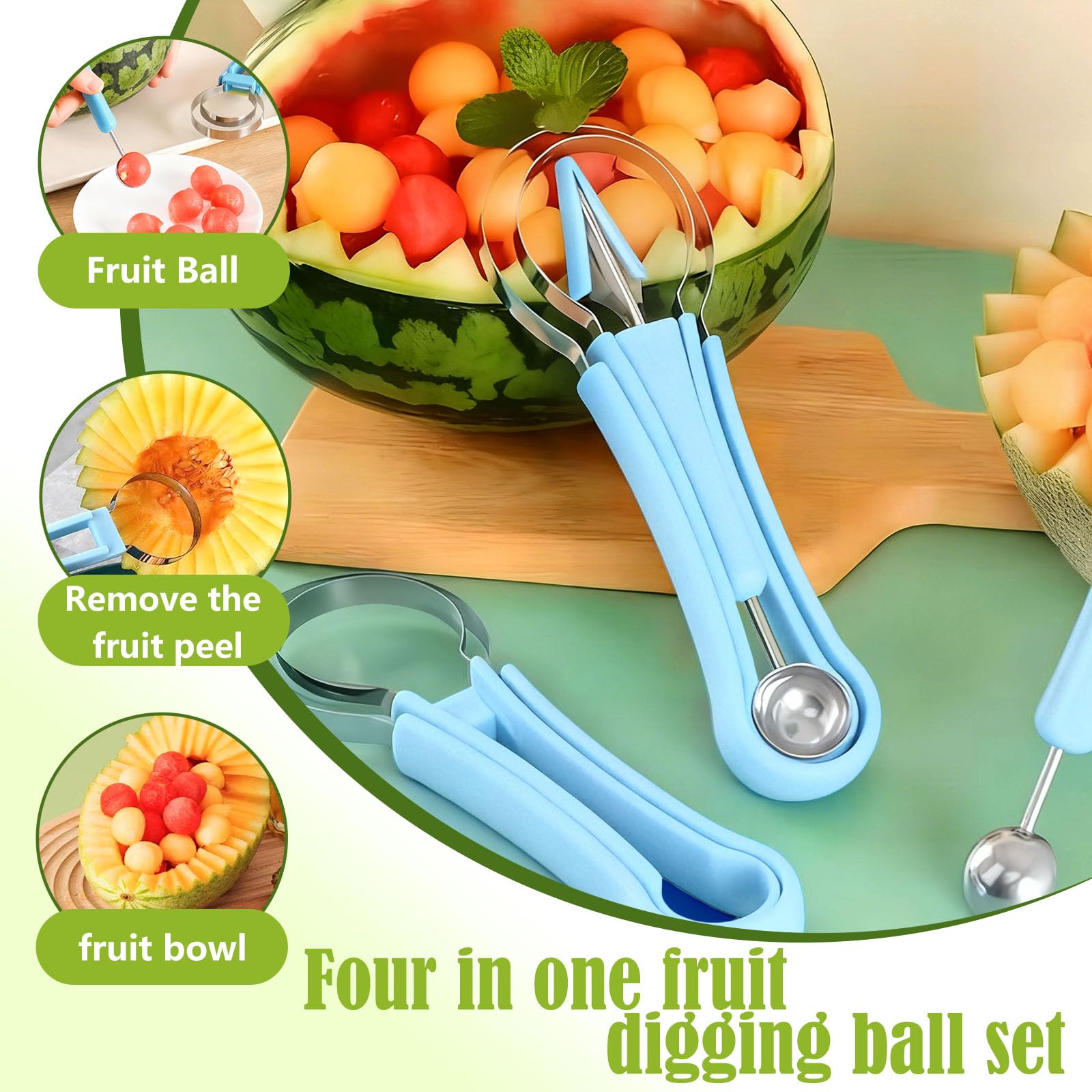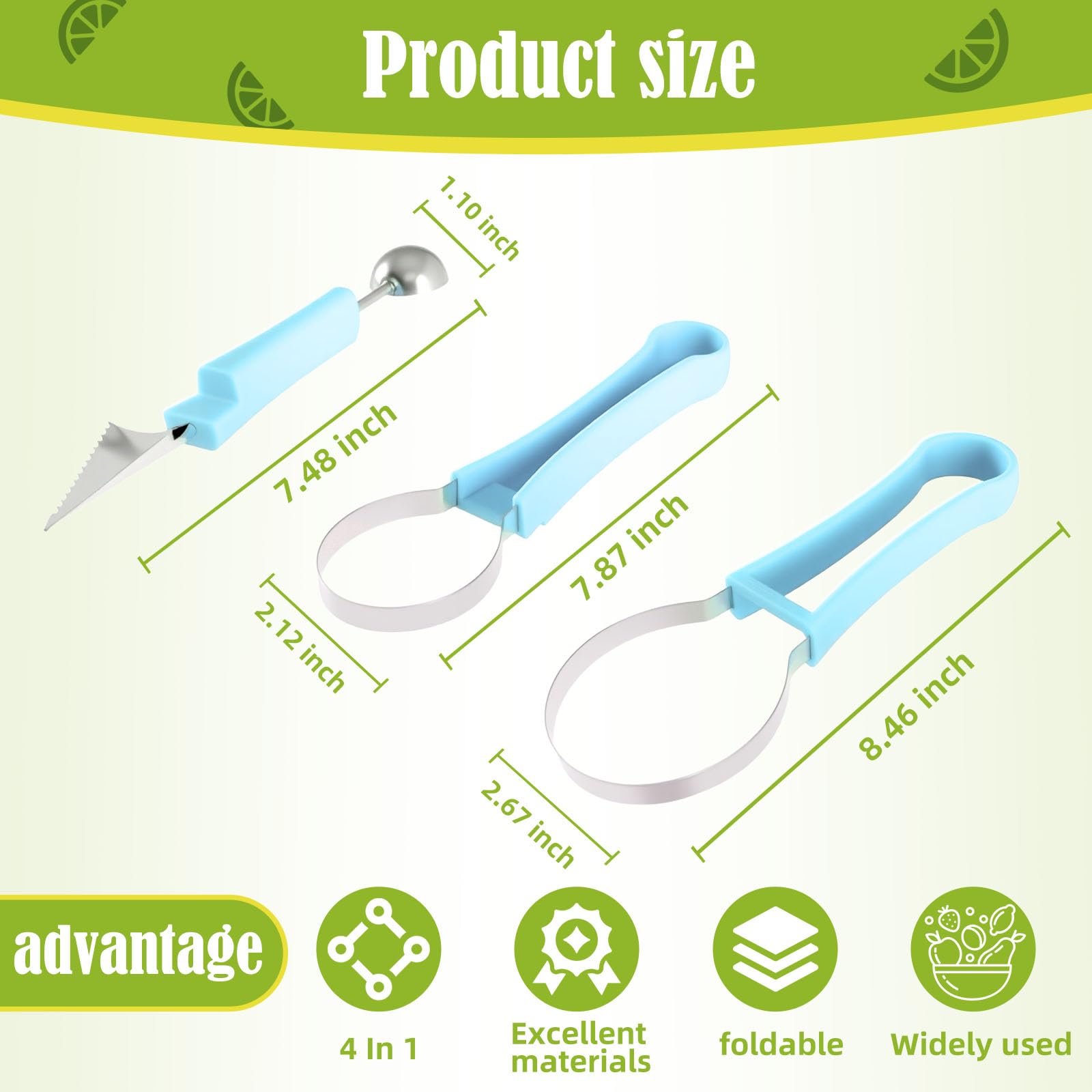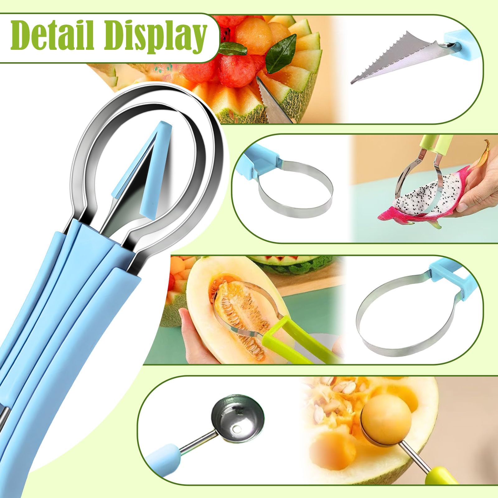 4 In 1 Multifunctional Fruit Tool: The fruit tool is designed in one piece and can be easily divided into 3 fruit spoon tools; Fruit spoon kitchen tool set is suitable for watermelon, cantaloupe, dragon fruit, kiwi fruit, etc