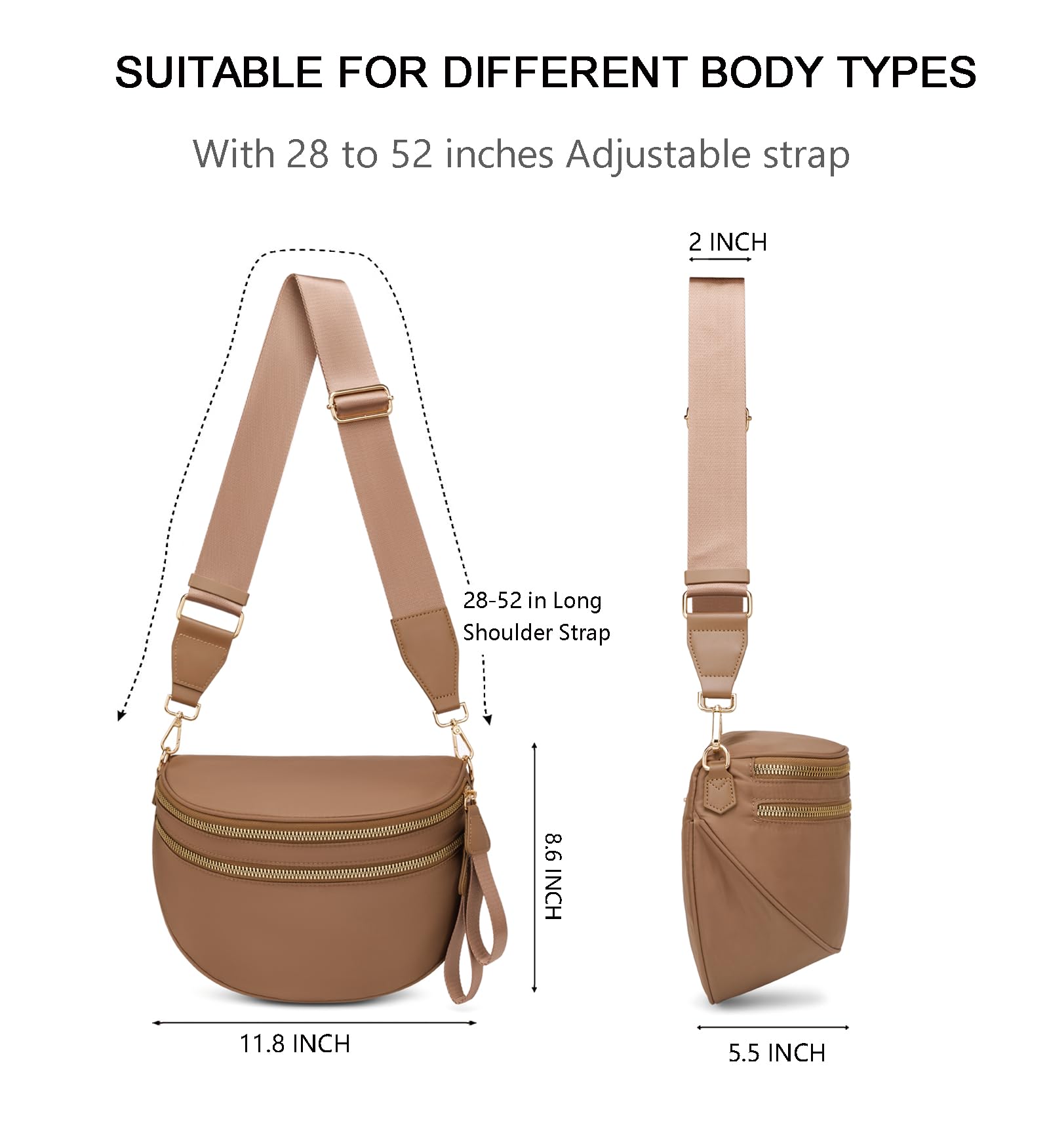 Widened & Adjustable Strap: The 2-inch widened strap on this crossbody bum bag reduces shoulder pressure for prolonged comfort. Adjusts up to 54 inches for versatile styling: wear as a shoulder bag, crossbody, sling, or across the chest. Accommodates all body types securely.