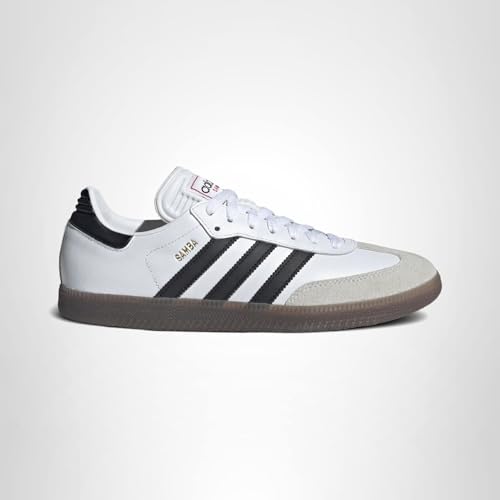 Description adidas Samba shoes have decades of soccer heritage behind them. Their soft leather upper will keep you comfortable on indoor courts, while suede overlays provide abrasion resistance. These shoes have a classic rubber outsole that provides grip to help you change direction on a dime, and their lightweight EVA insole helps smooth out every sprint.