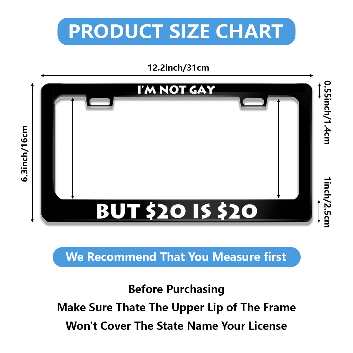 【Size】Gay license plate frame size is about 12" x 6", it fits most American and Canadian car license plates.