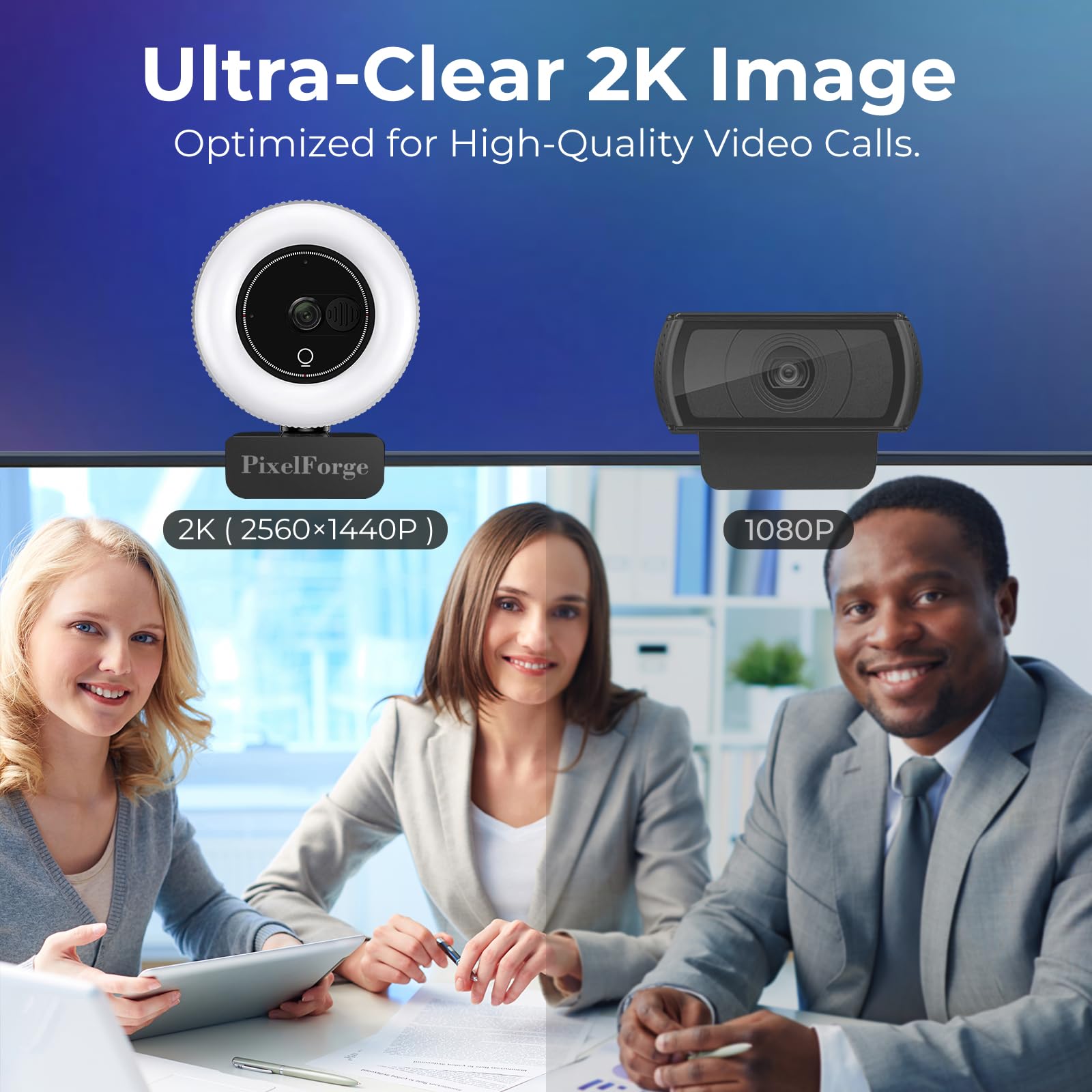 PixelForge 2K Webcam for PC with Microphone & Light & Privacy Cover, Web Camera for Desktop Computer/Laptop/Monitor/Mac, USB Streaming Camera for Zoom/Skype/Teams/Video Calling/Studying and Conference