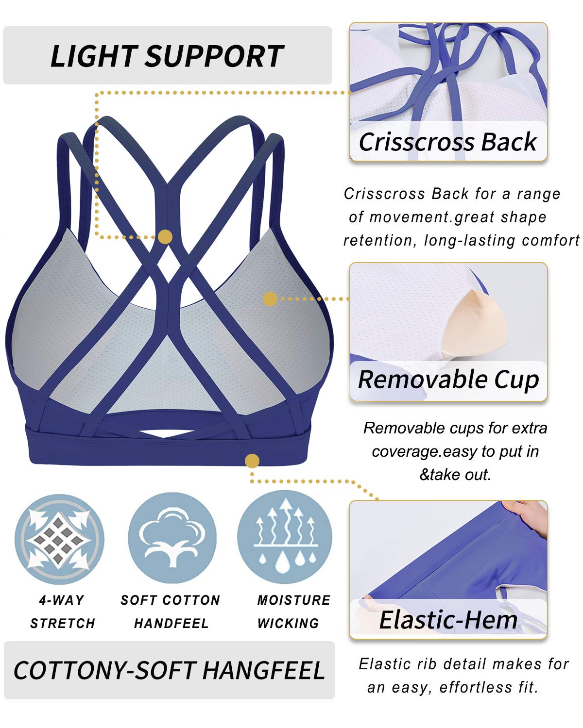 CRISSCROSS-BACK SPORTS BRA:RUNNING GIRL sports bras for women detailing gives the womens sports bras with Crisscross its signature style.But it doesn't just look good,it's hard working.And the running sports bra for women wrapped in durably soft performance stretch fabric keep you comfy and supported.The cotton-like meterial,soft and comfortable to wear.High support sports bras for women let you twist with ease,running bras for women high impact design offers a extra back support.