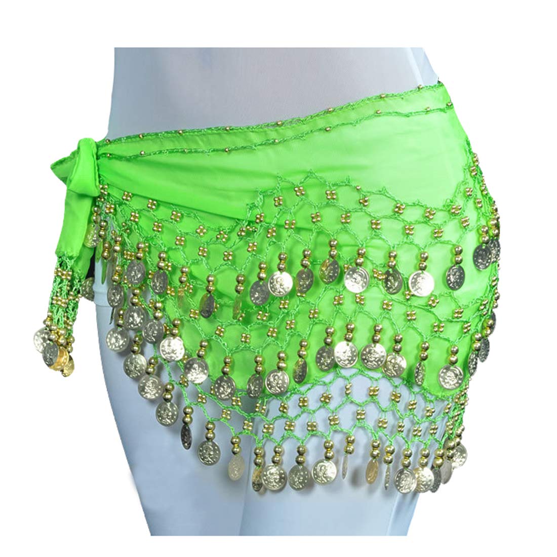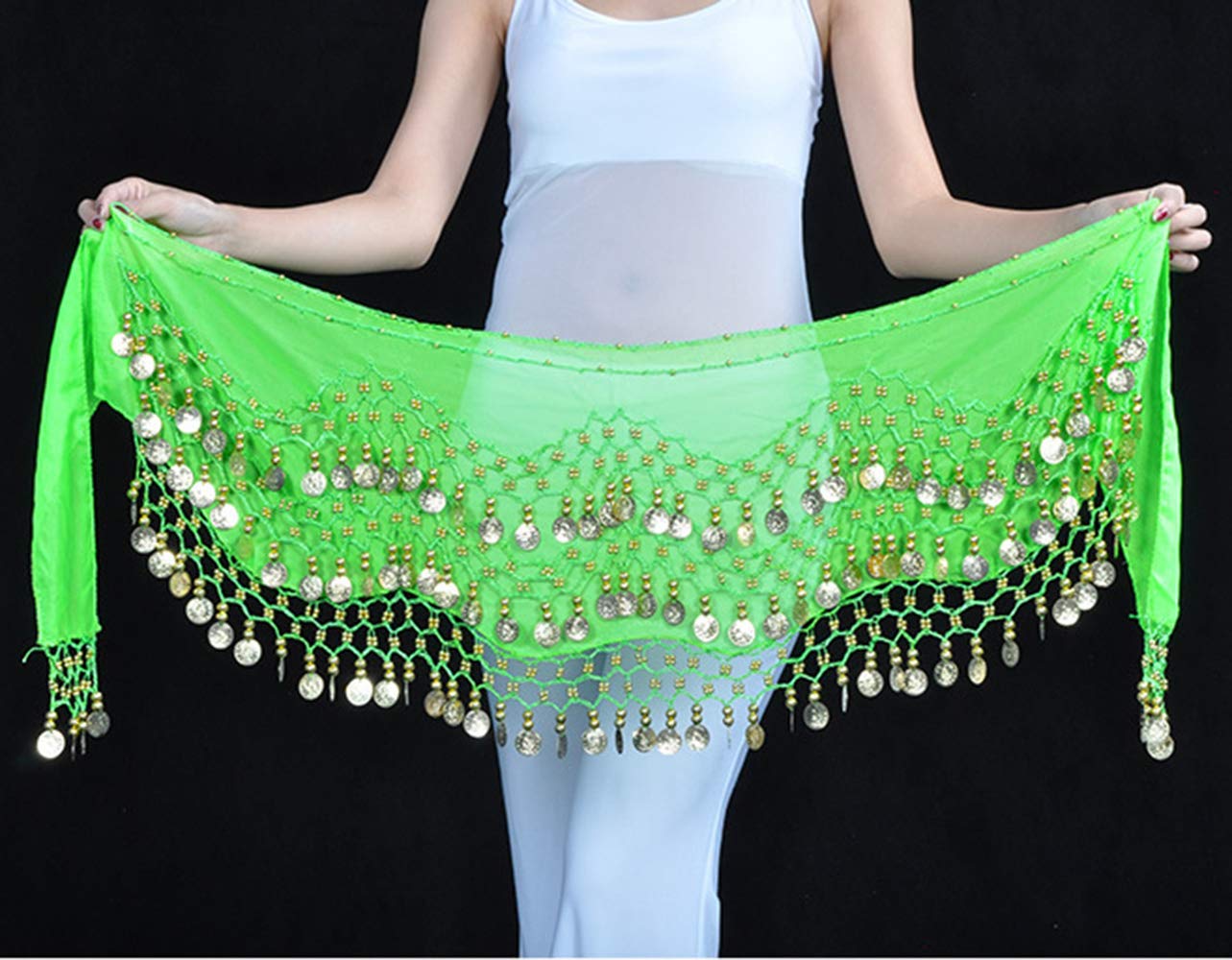 Refined Design: This hip scarf is crocheted delicately with 128pcs gold coins. The coins make lots of jingles when you shake your hips.