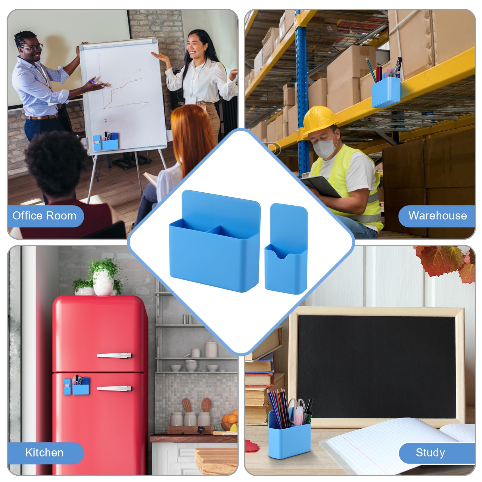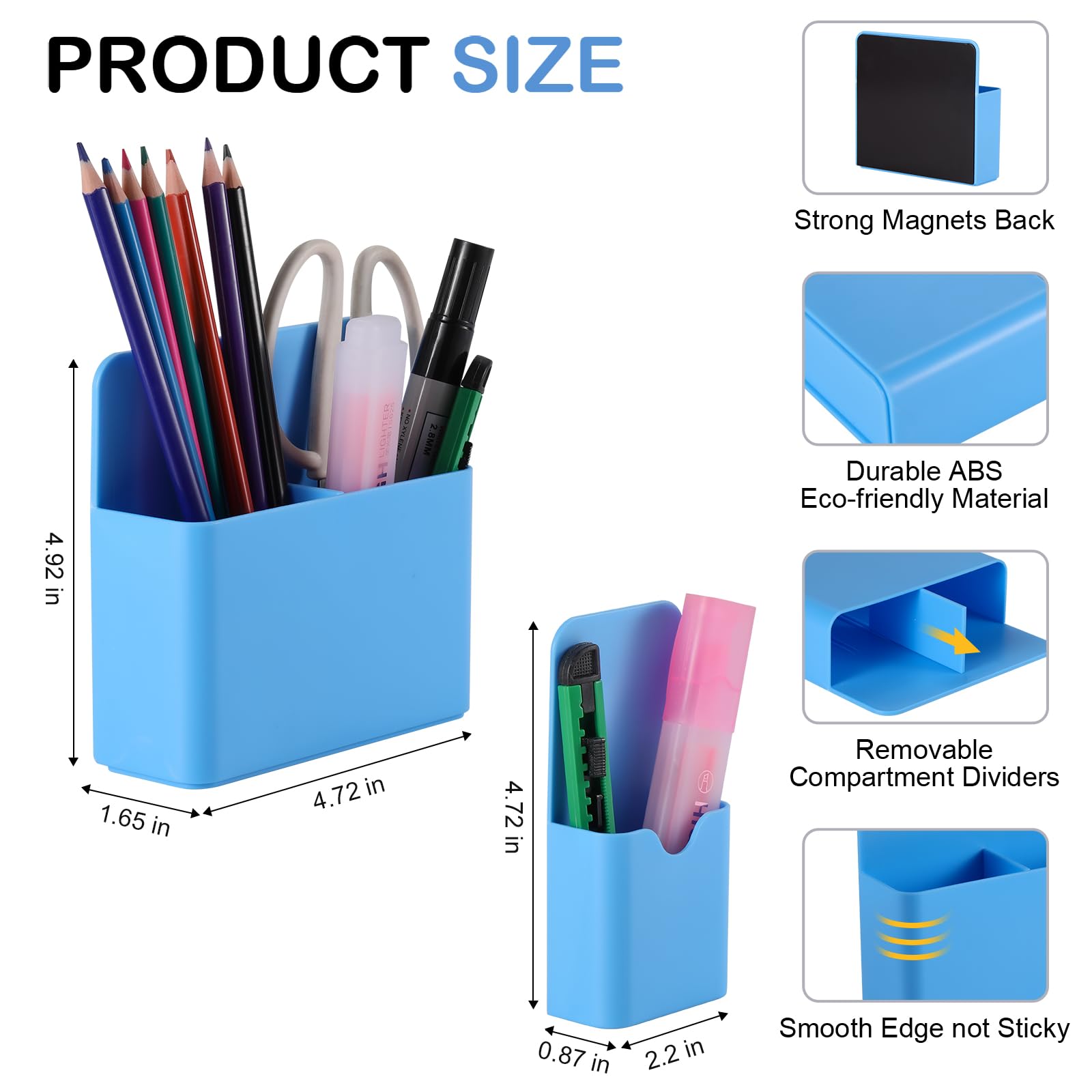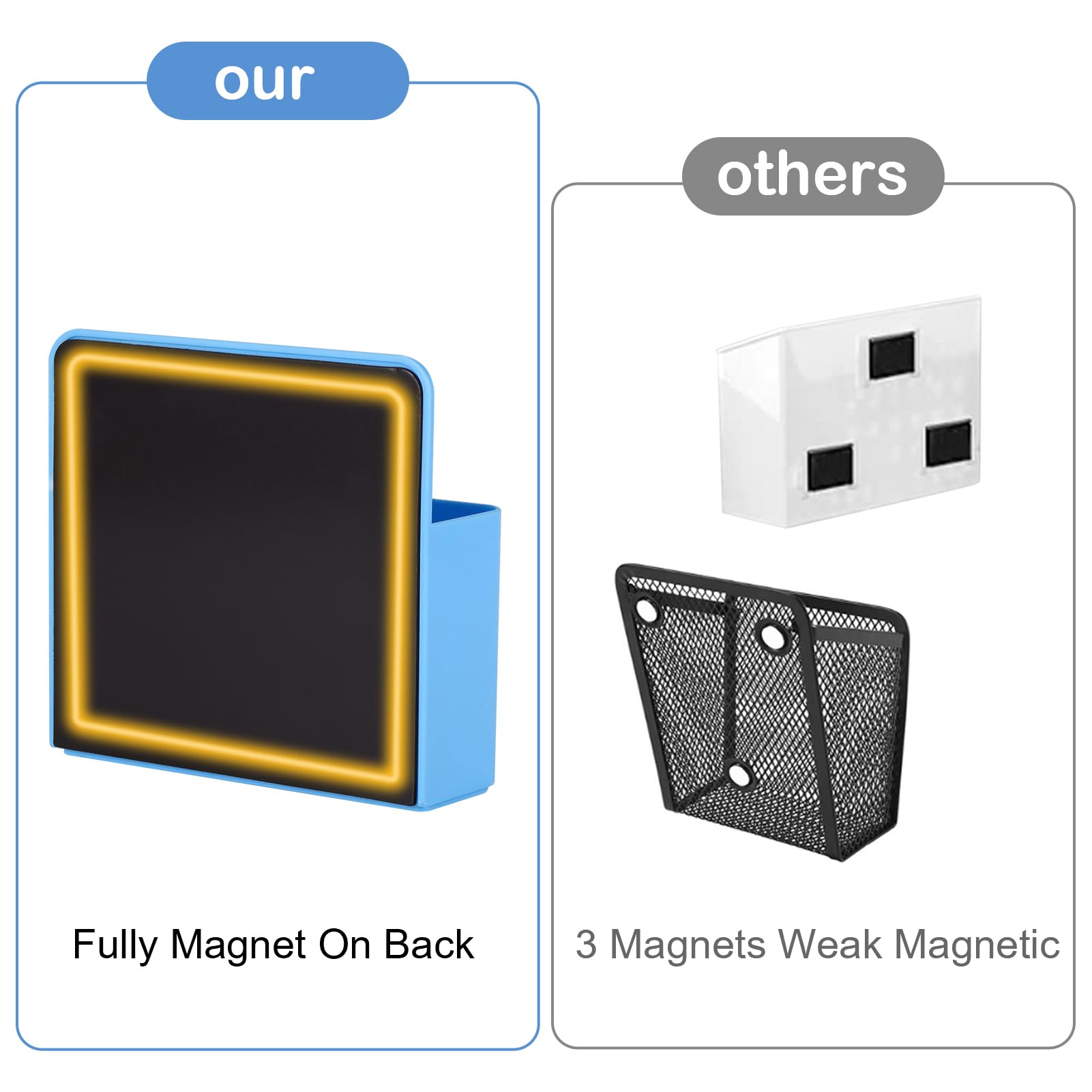 Simple and Practical:Our magnetic pen holders are suitable for holding pens, pencils, dry erase markers, erasers, rulers, children's scissors and other office, home or school supplies. Also can be served for refrigerator, whiteboard, locker or other metal surfaces.Keep your stuff always organized!