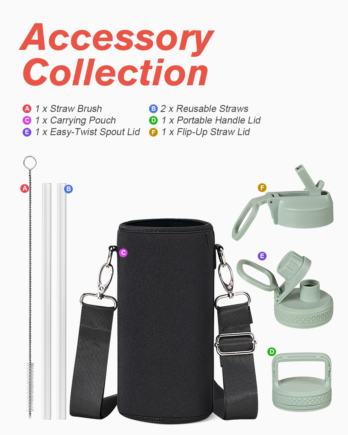 Flexible Drinking On-the-Go: This water jug comes with 3 different lids. The screw-on lid with flip-up handle is for easy ice refilling with superior portability; spout lid makes it convenient to drink hot liquid and straw lid for sipping cold