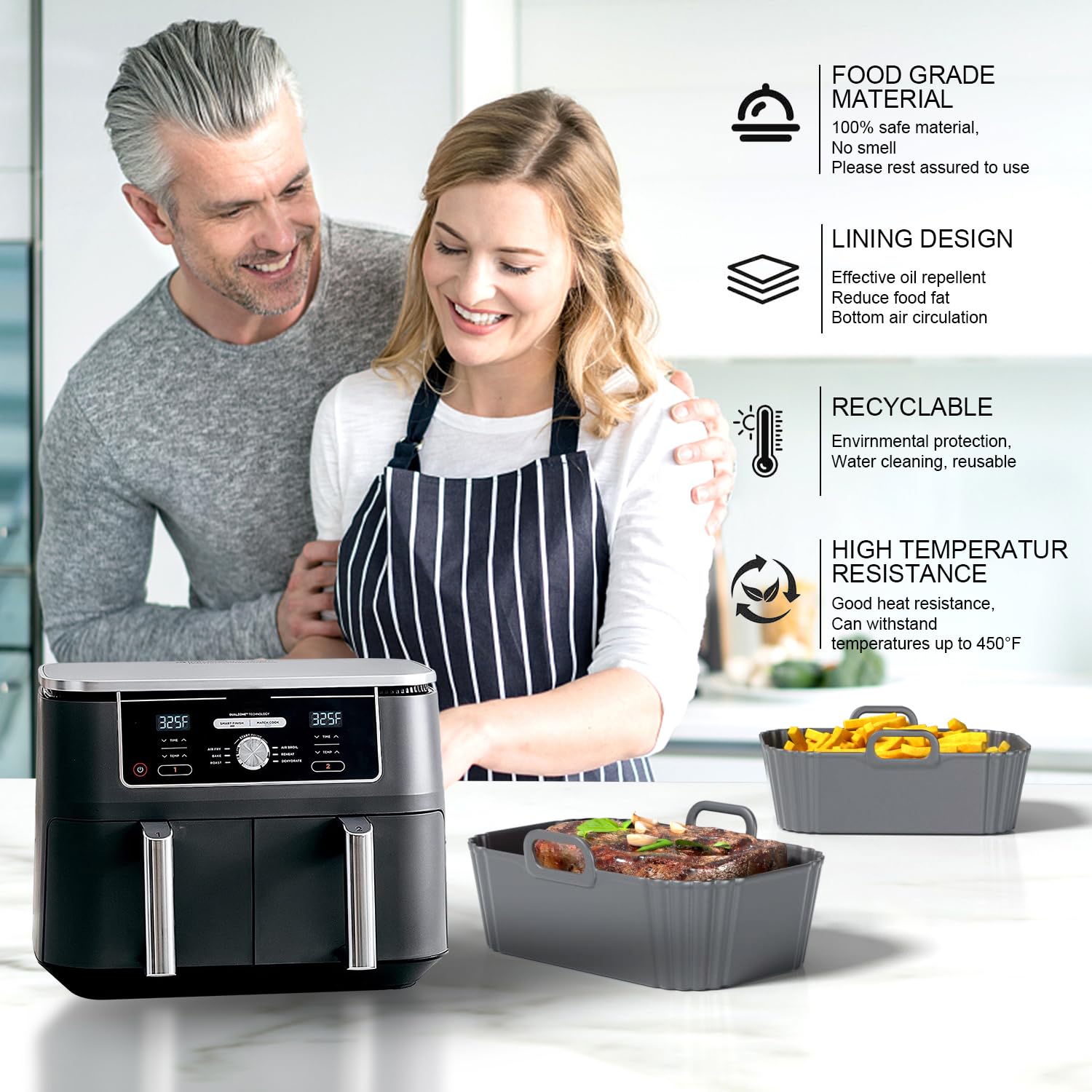 【Reusable Silicone Air Fryer Liner】Suitable for Ninja dual air fryer AF 300UK/AF400UK of ninja air fryer accessories, Also match Tower Dual T17088, Silicone Air Fryer Liner wall thickness has good support.