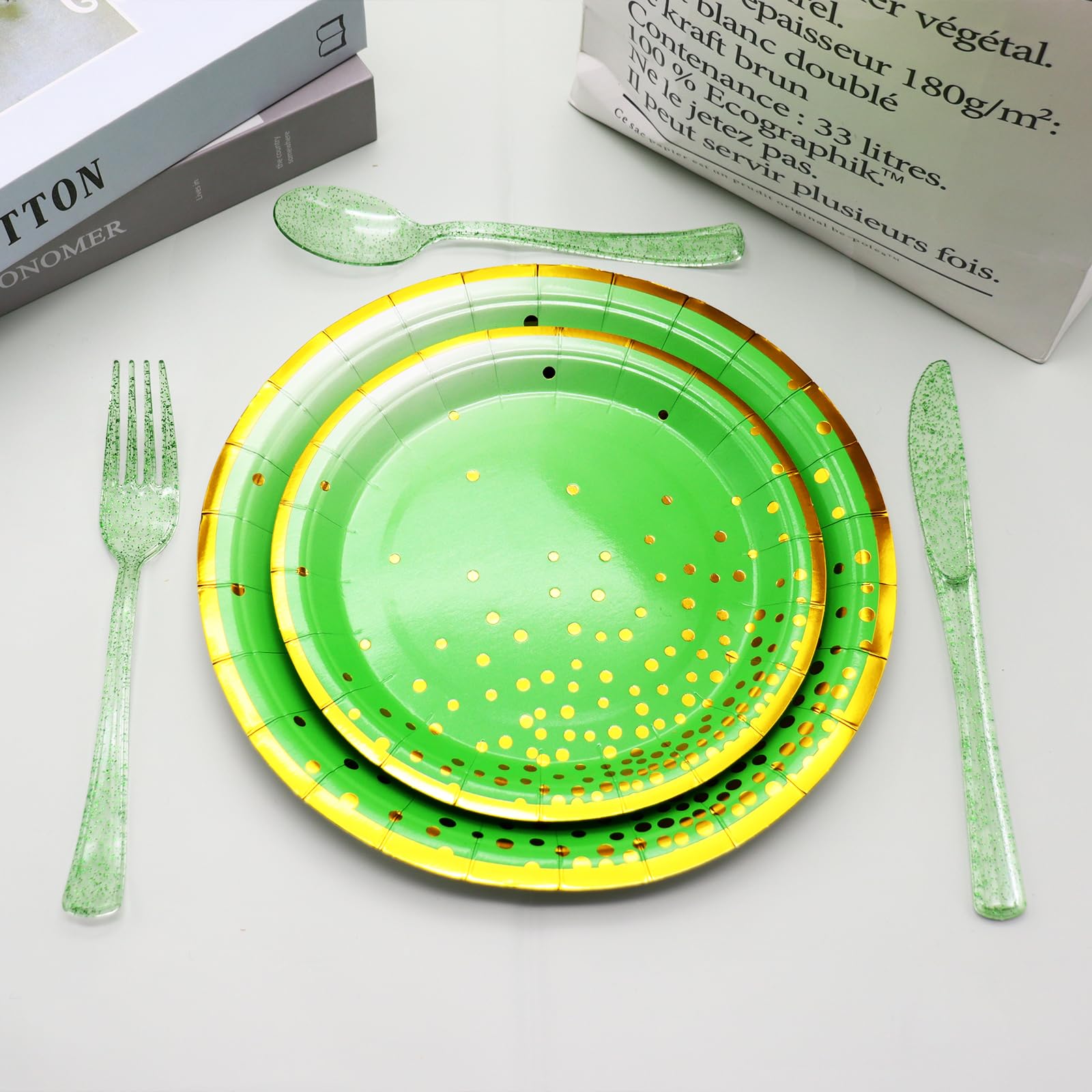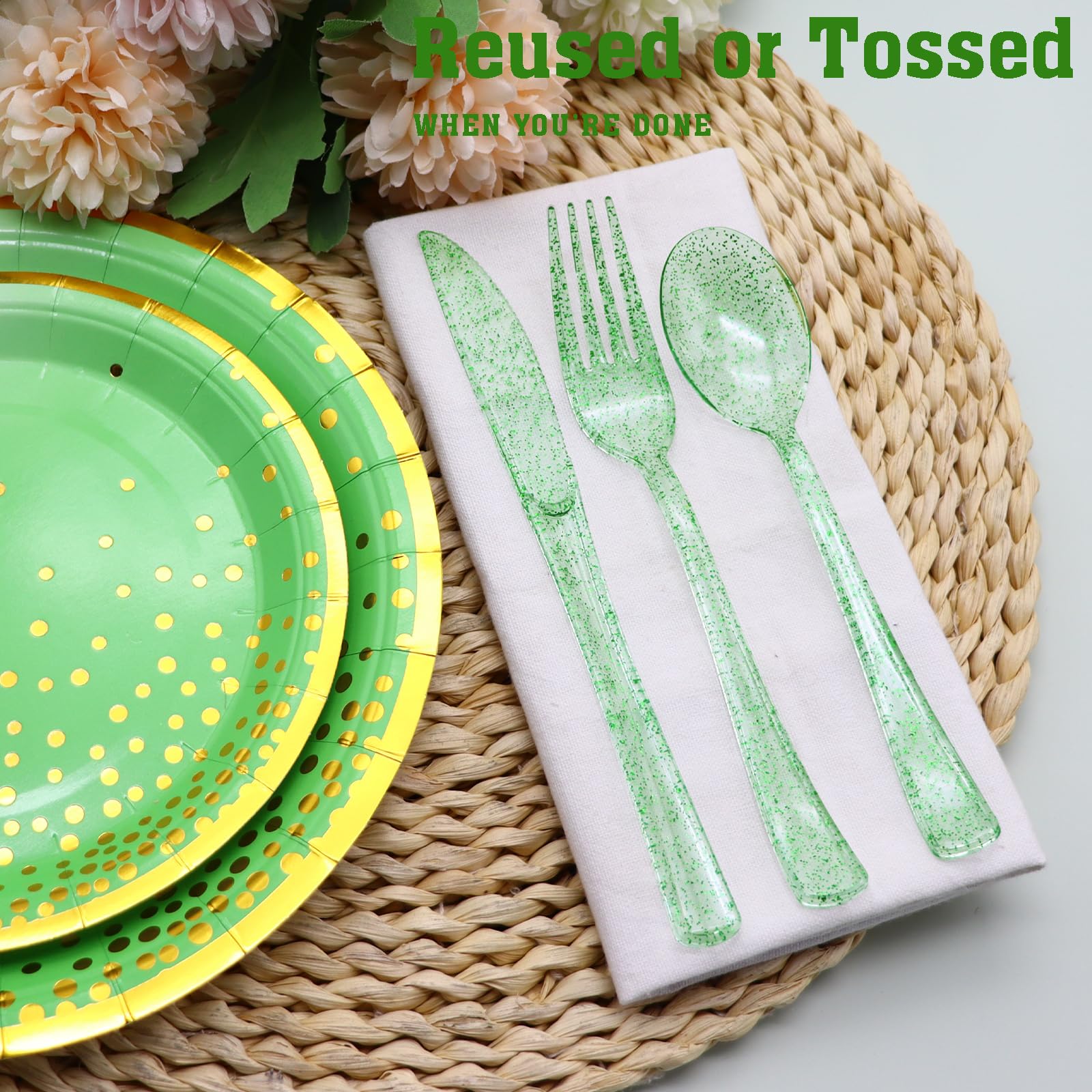 【Convenient and Reusable】The green plastic silverware is disposable and can easily be thrown away after the party, eliminating the hassle of a long wash and clean-up so you can focus on having a great time with friends and family. Of course, if you want to continue using the green plastic silverware, simply wash it in soapy water to restore its lustre and get it ready for your next party.