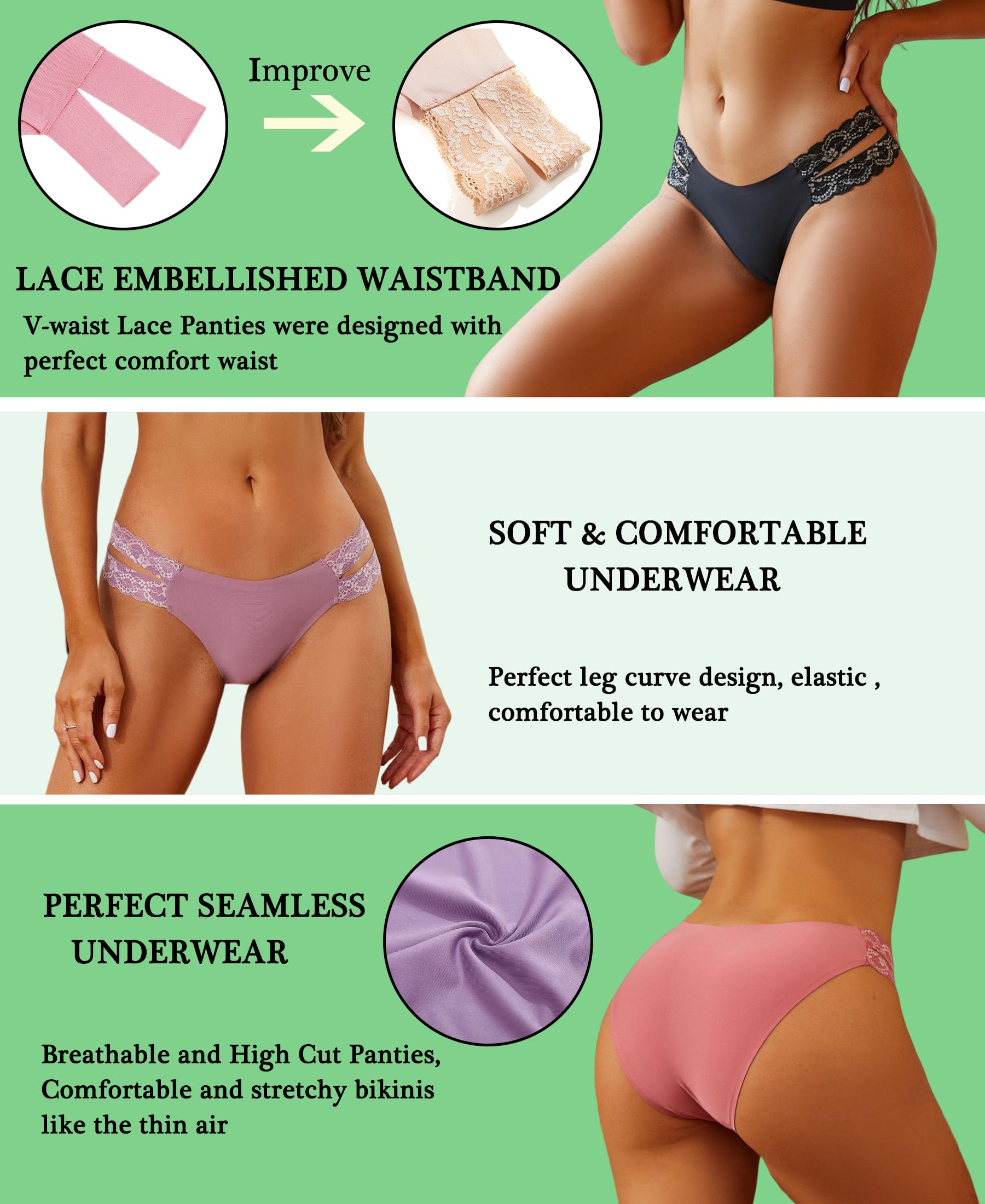 【Multiple Colors Choice】This 6 pack no show panties for women will give you more color choices for daily wearing. This sexy invisible panties is no pilling, no fading, no shrinking and no skin irritation. Say goodbye to visible panties line, Tag-less design and invisible eliminates chafing or discomfort.